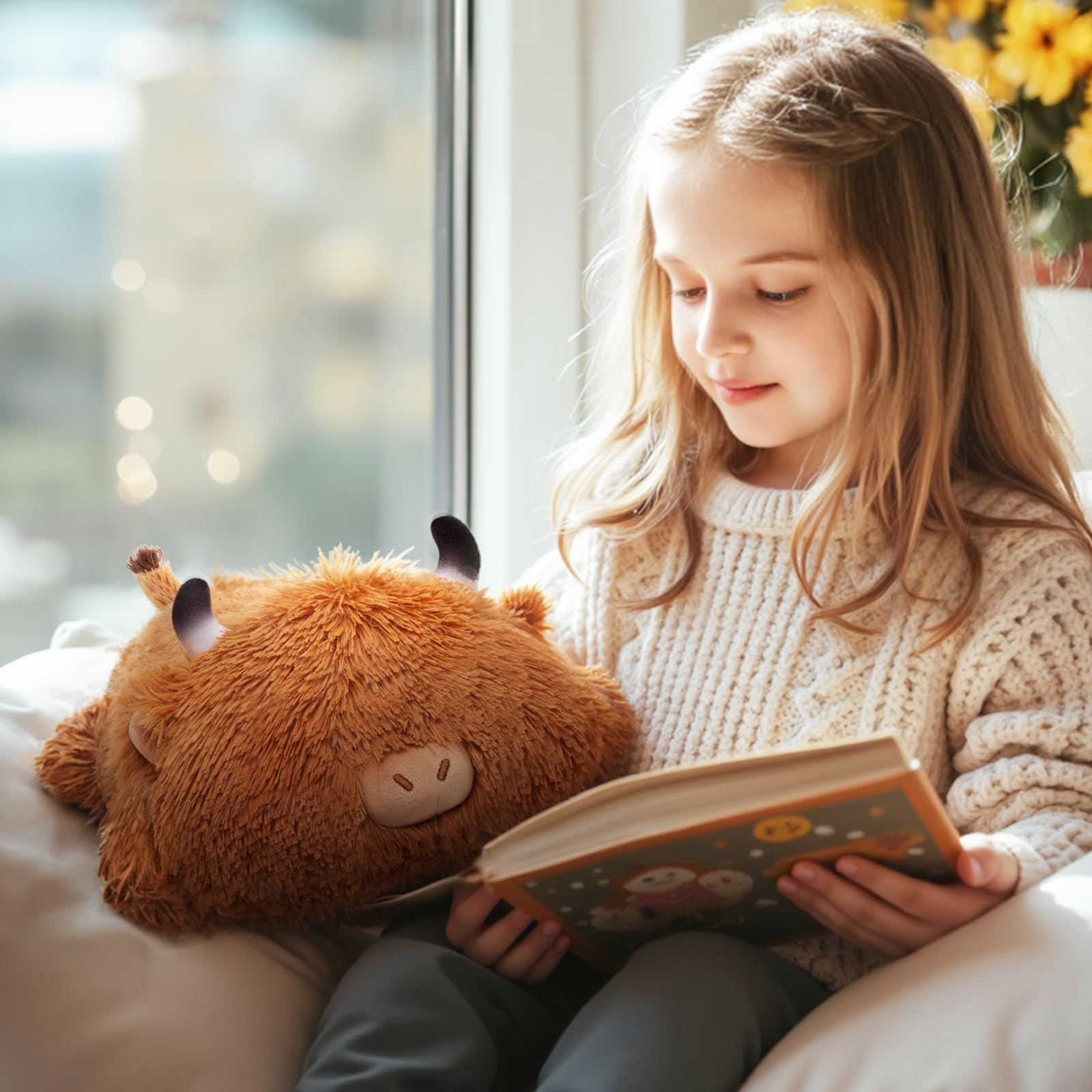 "Perfect gift idea: With its cute highland cow shape and convenient size (33 cm), this plush pillow is the perfect gift for kids, girls, or friends for Christmas, birthdays, or anniversaries"