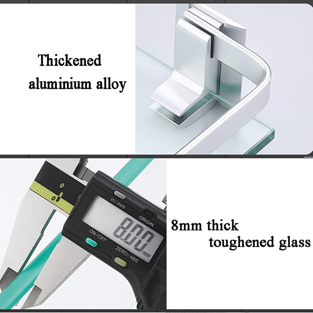 ["\"【100% rustproof】 - The bracket is made of authentic space aluminum, after anodizing treatment, 100% rustproof, ideal for use in damp bathroom environments.","✔【Max. Load 5 kg/11 lbs】 - No plastic, metal frame, solid construction, sturdy design. Screws are made of stainless steel SUS 304 and do not rust. It can be screwed onto flat and smooth wall surfaces such as tiles, marble, metal, glass, etc. (Note: Not suitable for non-solid walls.)","✔【Extra thick tempered glass】 - The tempered glass shelf is extra thick at 0.3 inches, can withstand most occasional bumps, safe to use and child-friendly. If it breaks, it crumbles into small granular pieces, instead of shattering into jagged shards like flat glass, causing less risk of injury.","✔【Space-saving】 - Glass shelf with rail is an ideal choice for organizing bathroom essentials such as soap, shampoos, conditioners, shower gels, and other bathroom accessories. It provides ample capacity for storing your bathroom essentials while freeing up space on your countertop or cabinet.","✔【All hardware and instructions included】 - 1 x glass bathroom shelf, all screws, anchors, and installation instructions are included. You can contact us for a step-by-step guide if you need assistance.\""]