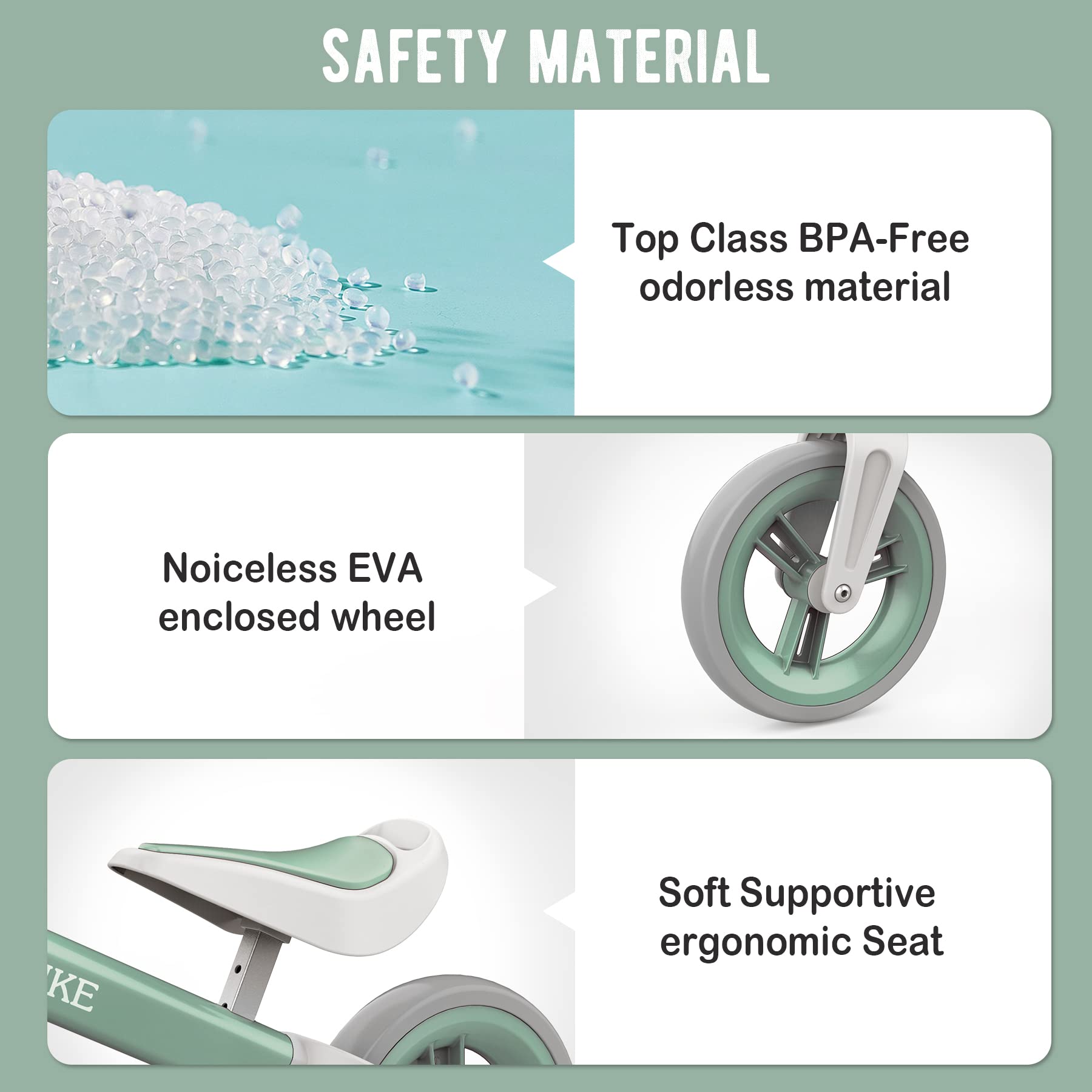 MHCYLION balance bike for kids aged 1.5-4 years up to 25 kg, adjustable handlebar and seat, handlebar lock, ultralight children's balance bike for boys and girls(Green)