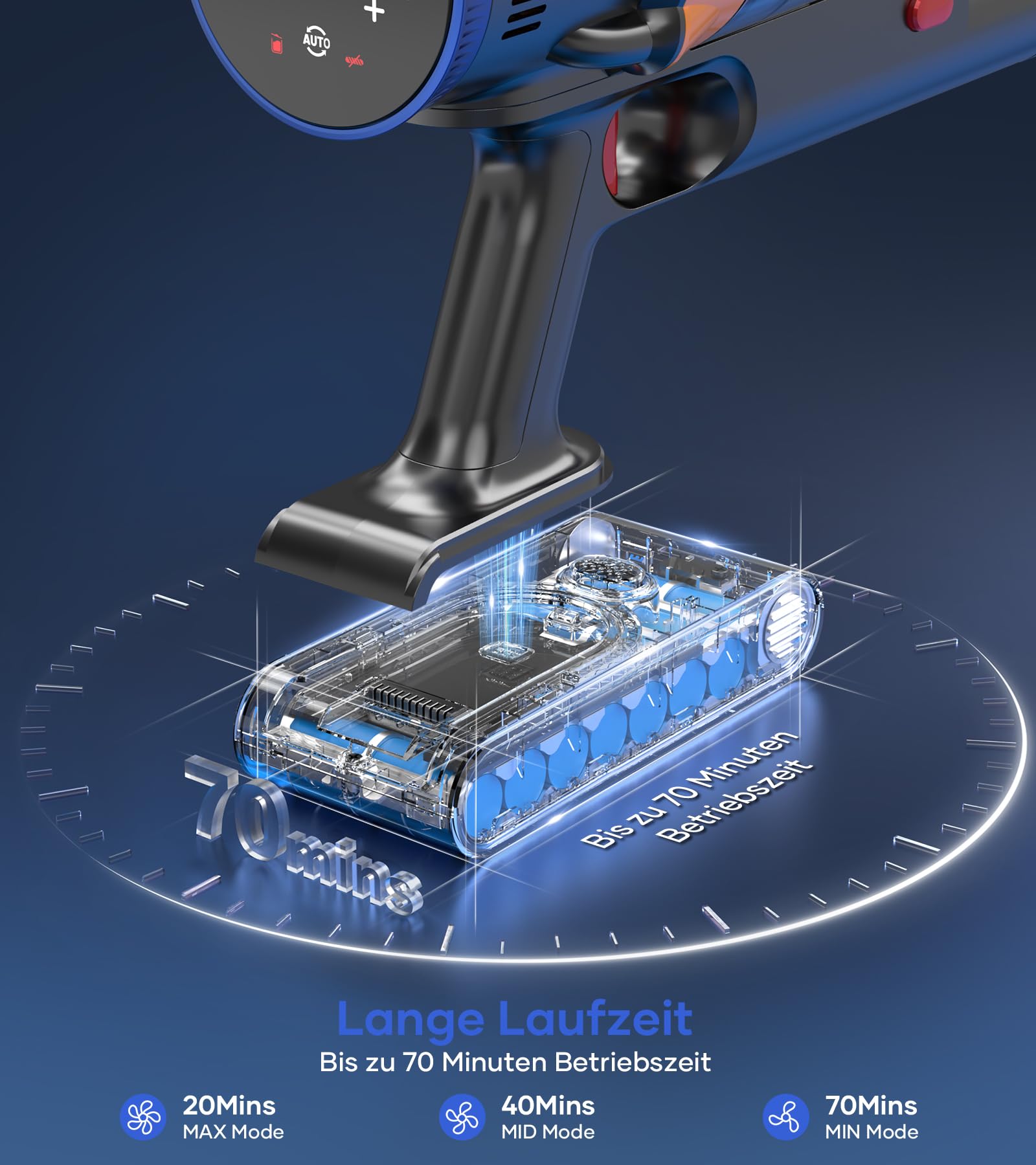MIBODE Cordless Vacuum Cleaner, 45000Pa/550W/70Mins with Smart Display, Automatic mode & Anti-Tangle Brush for Carpet, Hard Floor, and Pet Hair.