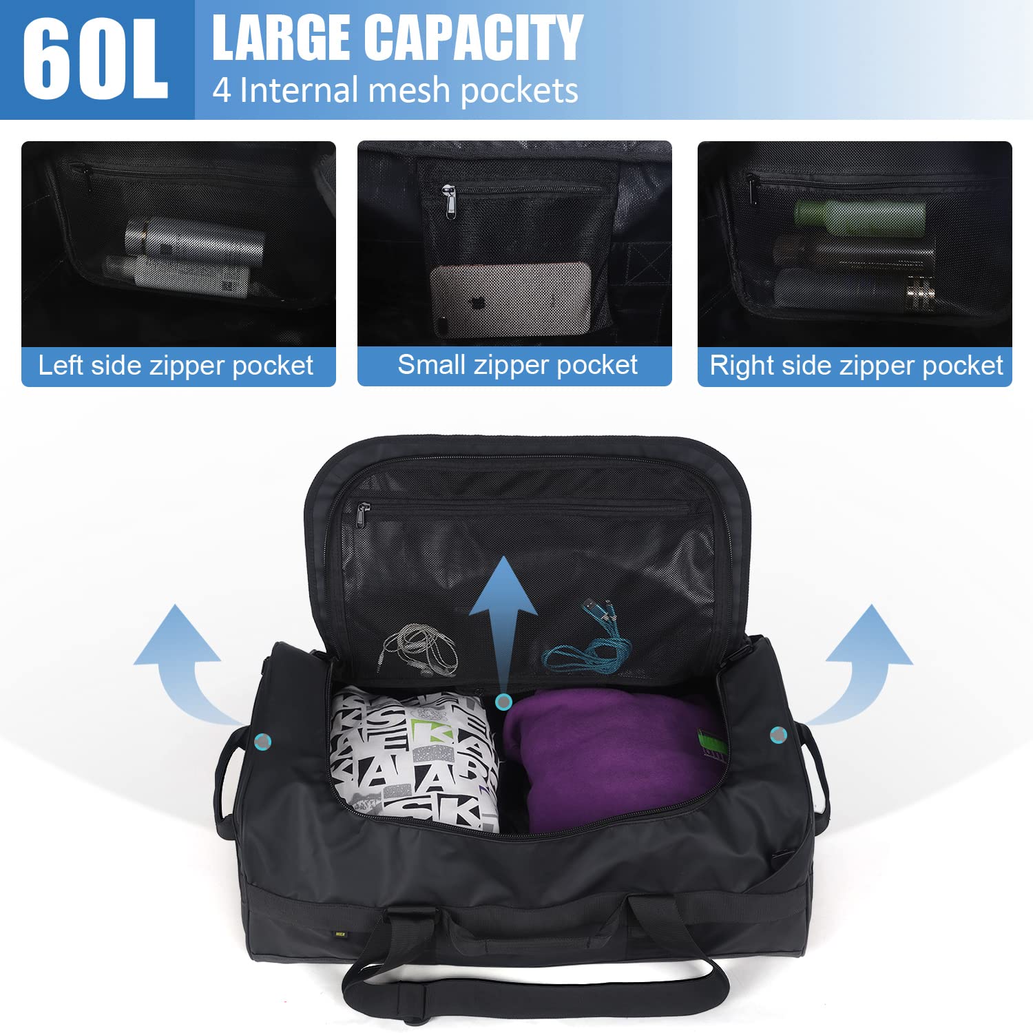 MIER Men's Sports Bag Water-Resistant Travel Bag 60L Large Heavy Duty Convertible Sports Backpack with Backpack Straps and Shoe Compartment for Gym, Sports, Travel, Duffle Bag-Black