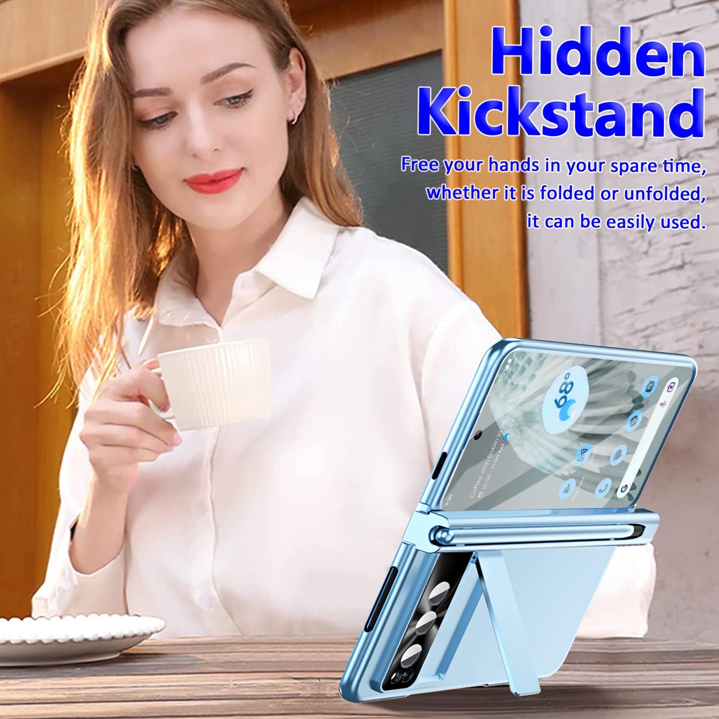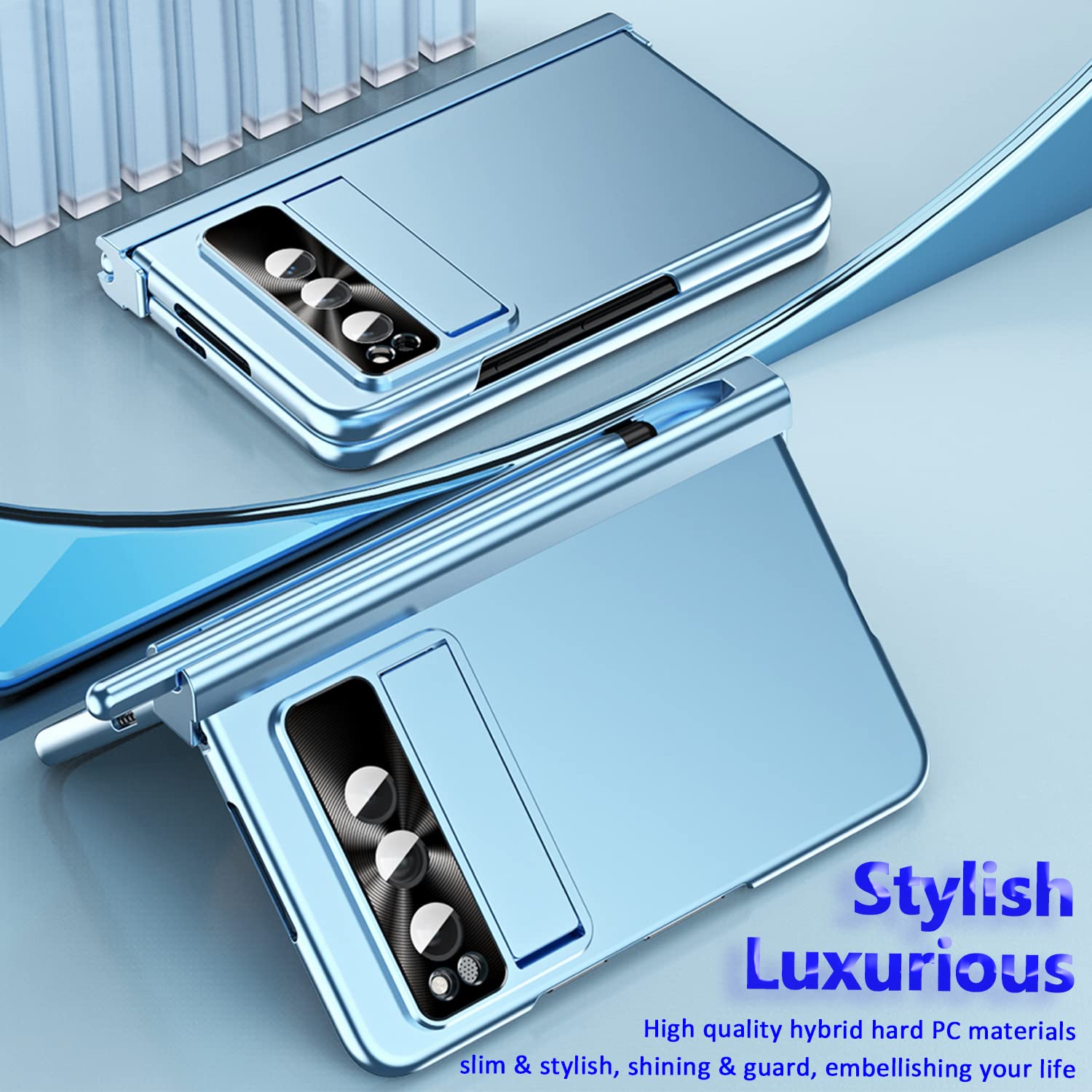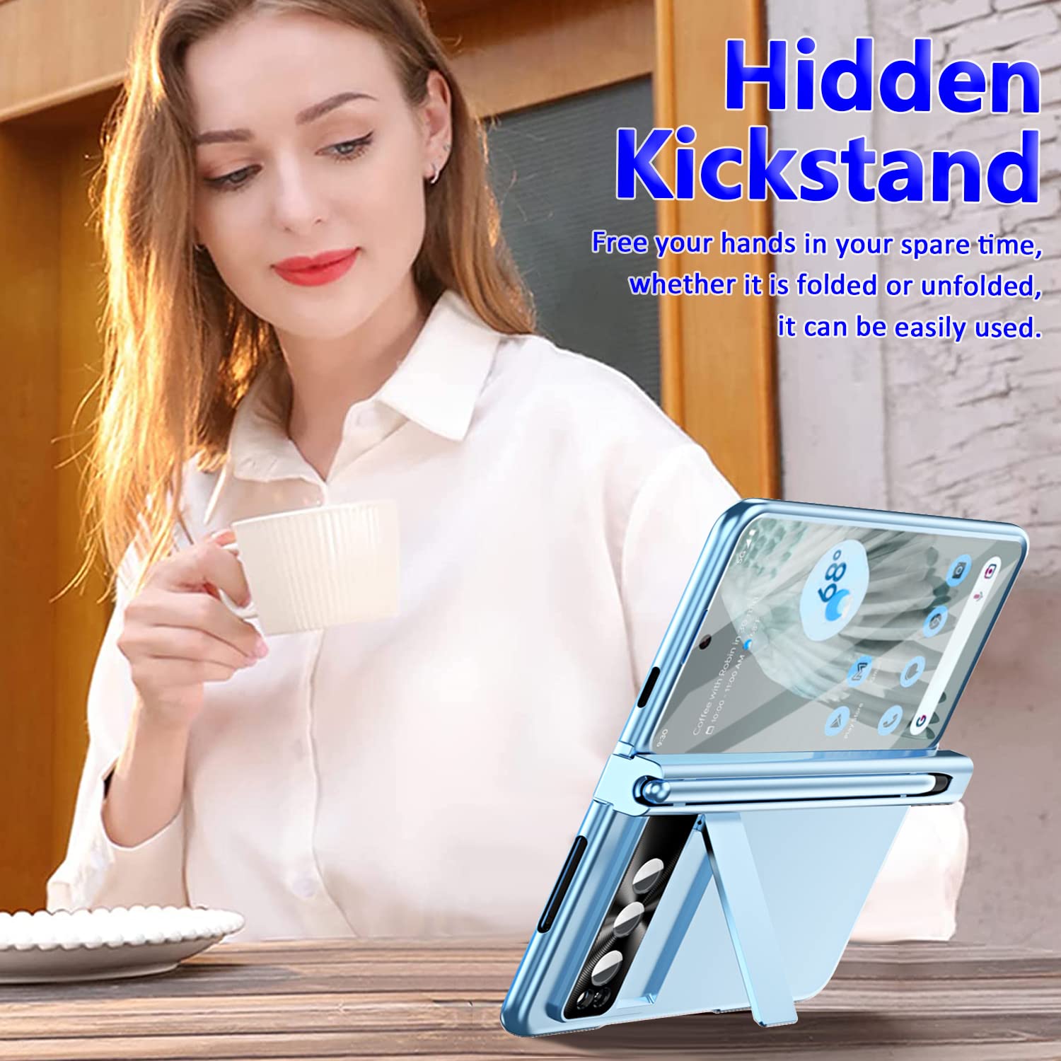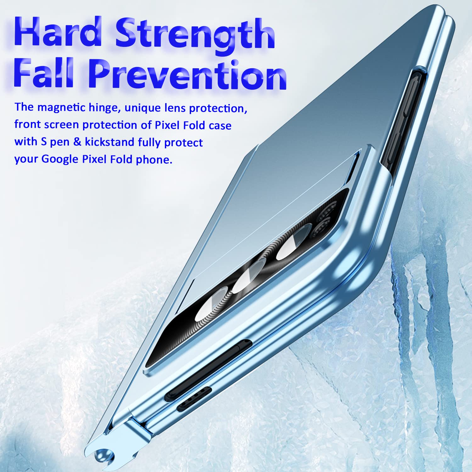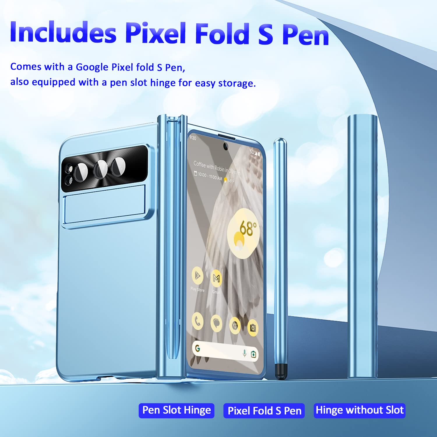 Miimall phone case Compatible with Google Pixel Fold, Tough PC Material, Protective Cover with Screen Protector, Camera protection, Hinge protection, Stand + Pen, Blue