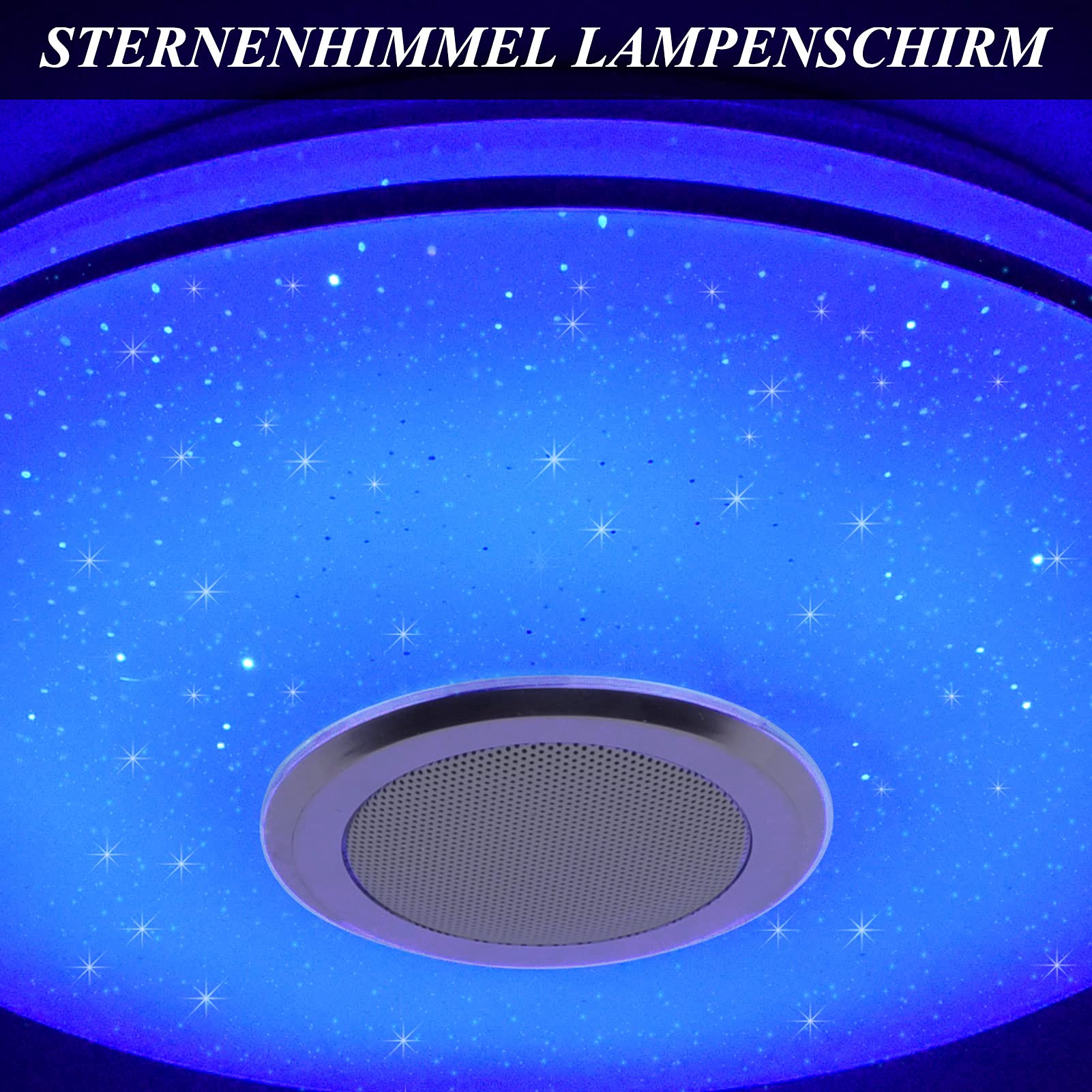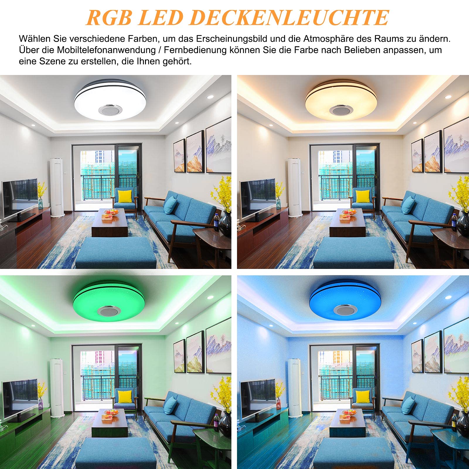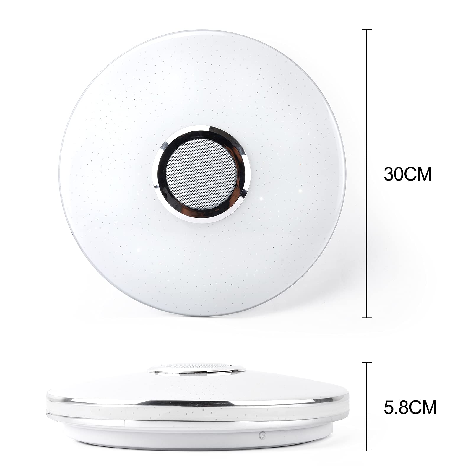 APP control - Our lamp with Bluetooth speaker can be controlled not only by remote control, but also by mobile app. You can control music, light brightness, RGB color change, scene mode, and other multifunctional functions via your mobile phone, so you have a different experience from usual LED ceiling light dimmable!