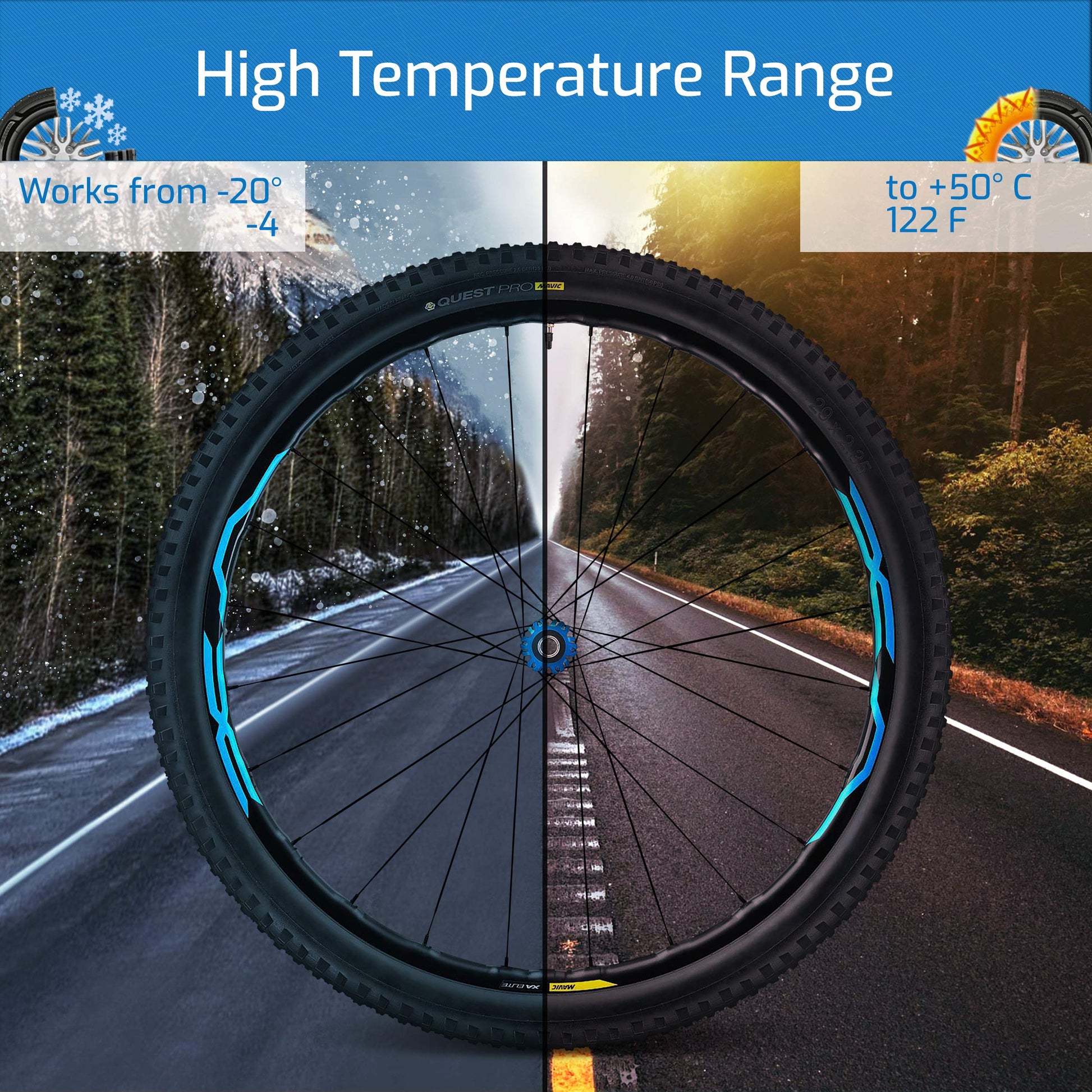 Tubeless MTB, gravel, & road bike sealant - temperature and pressure resistant: milKit sealant works from -20 to +50°C, ensuring that it remains stable even in high heat conditions (e.g. from braking). The milKit Tubeless sealant can withstand extremely high pressure and is therefore perfect for road bikes as well.