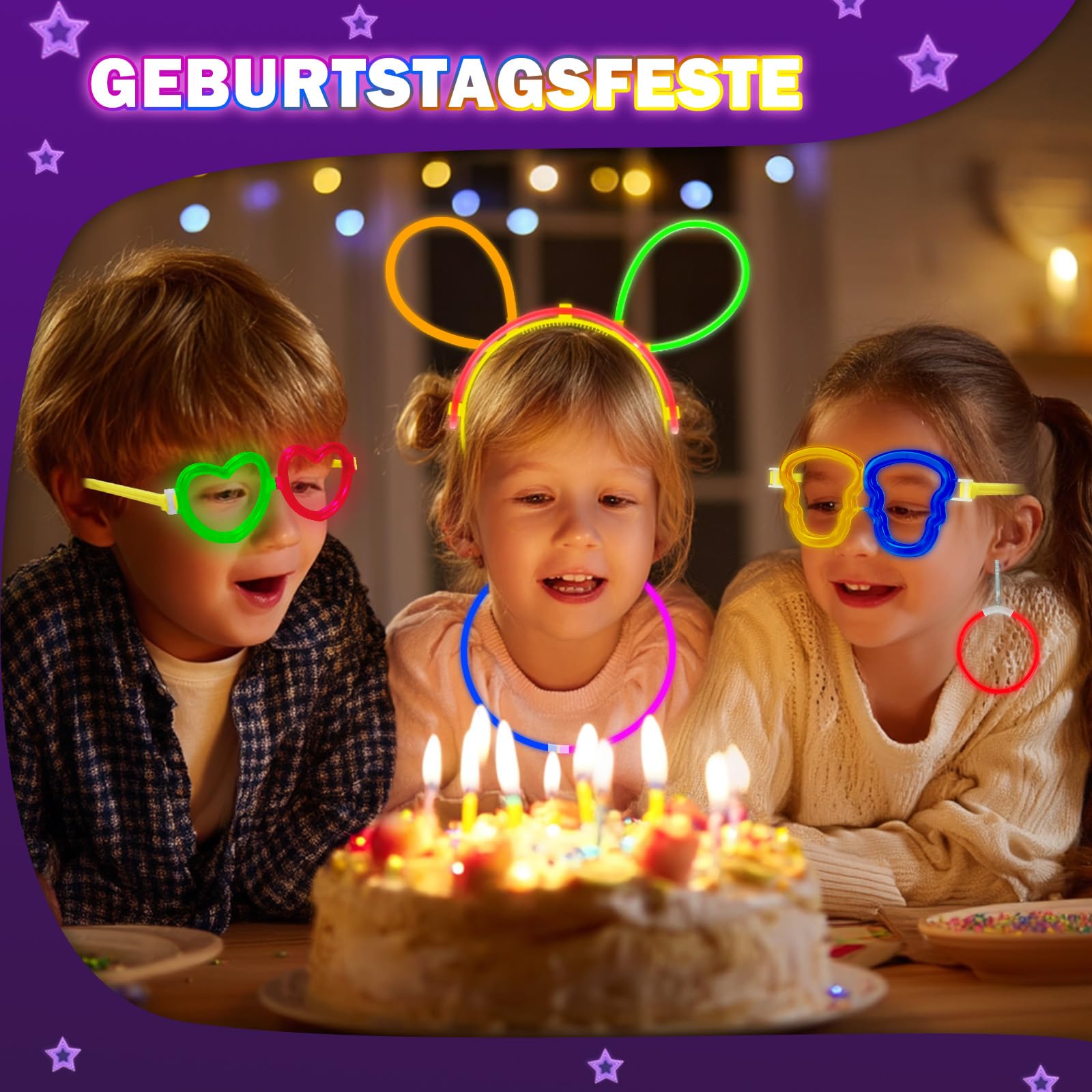 GET CREATIVE: Let your imagination run wild and use the included glow sticks and connectors to create your own shapes or unique glowing designs. Perfect for birthday parties, 4th of July, Independence Day, Halloween party, Christmas party, New Year's Eve fireworks, football party, Valentine's Day, Easter, Cinco De Mayo, carnival. Gifts for kids, boys, and girls.