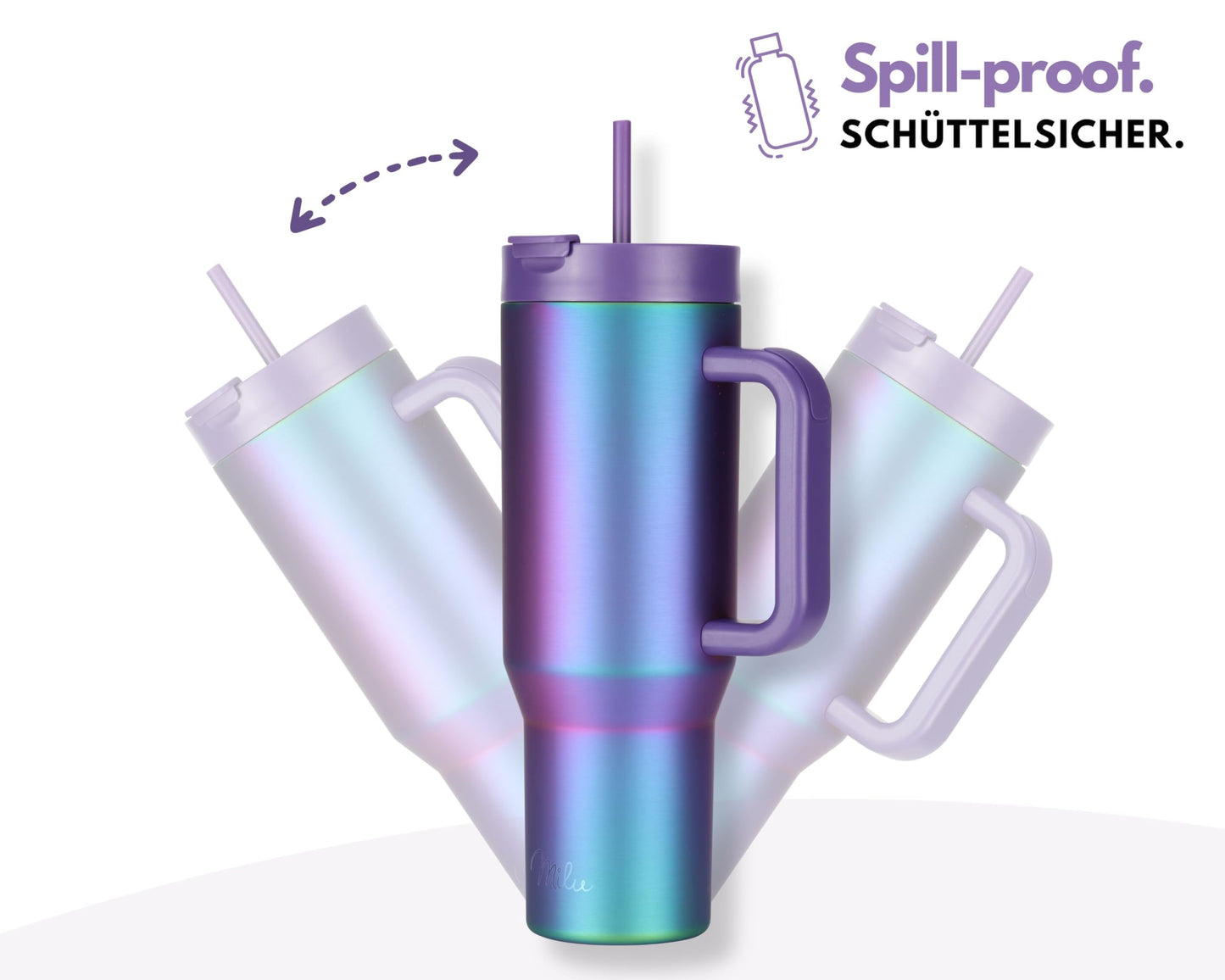 ["48 HOURS ICE COLD: Thanks to our specially developed, double insulated lid, your drinks stay ice cold up to 24 hours, ice cubes stay frozen up to 48 hours, and hot drinks stay hot up to 12 hours! The superior insulation of the lid makes the crucial difference.","DIMENSIONS: Cup top Ø 9.6cm, Cup bottom Ø 7.6cm, Overall height 28cm, Weight: 560g. Perfect fit for cup holders or side pockets of backpacks. Thanks to high-quality 304 stainless steel, the Milu thermos cup is very robust and scratch-resistant.","SAFE & VERSATILE: The 2-in-1 lid gives you the freedom to decide whether you want to use your tumbler with a straw or as a coffee cup. The rubberized handle provides a secure grip.","SHAKEPROOF & EASY TO CLEAN: The innovative 2-in-1 lid ensures that your Milu tumbler is shakeproof. (Not leakproof) The lid is dishwasher safe, while the cup can be easily cleaned by hand thanks to the large opening.","WE'RE HERE TO HELP: Our outstanding German customer support is always available to you. Ask questions or order spare parts for your Milu insulated cup. Milu stands for happy and satisfied customers.","THE PERFECT GIFT: With the option to personalize the tumbler with a name engraving, it becomes a unique and ideal gift. Click on "Customize Now" to create the perfect gift for any occasion."]