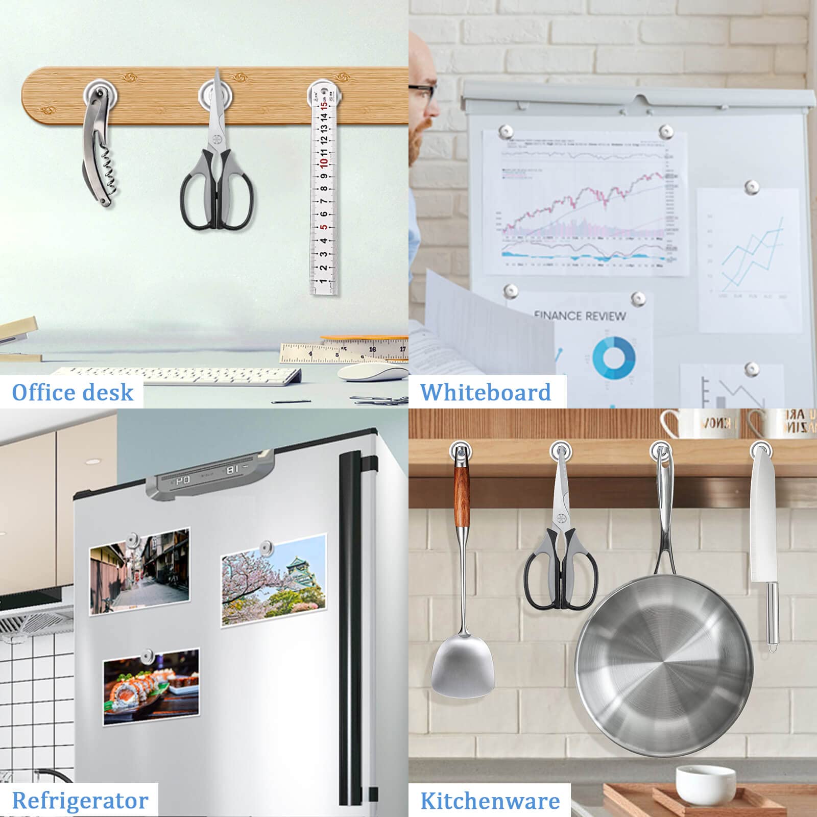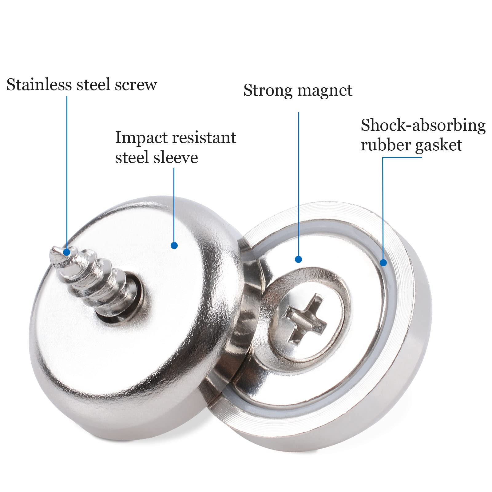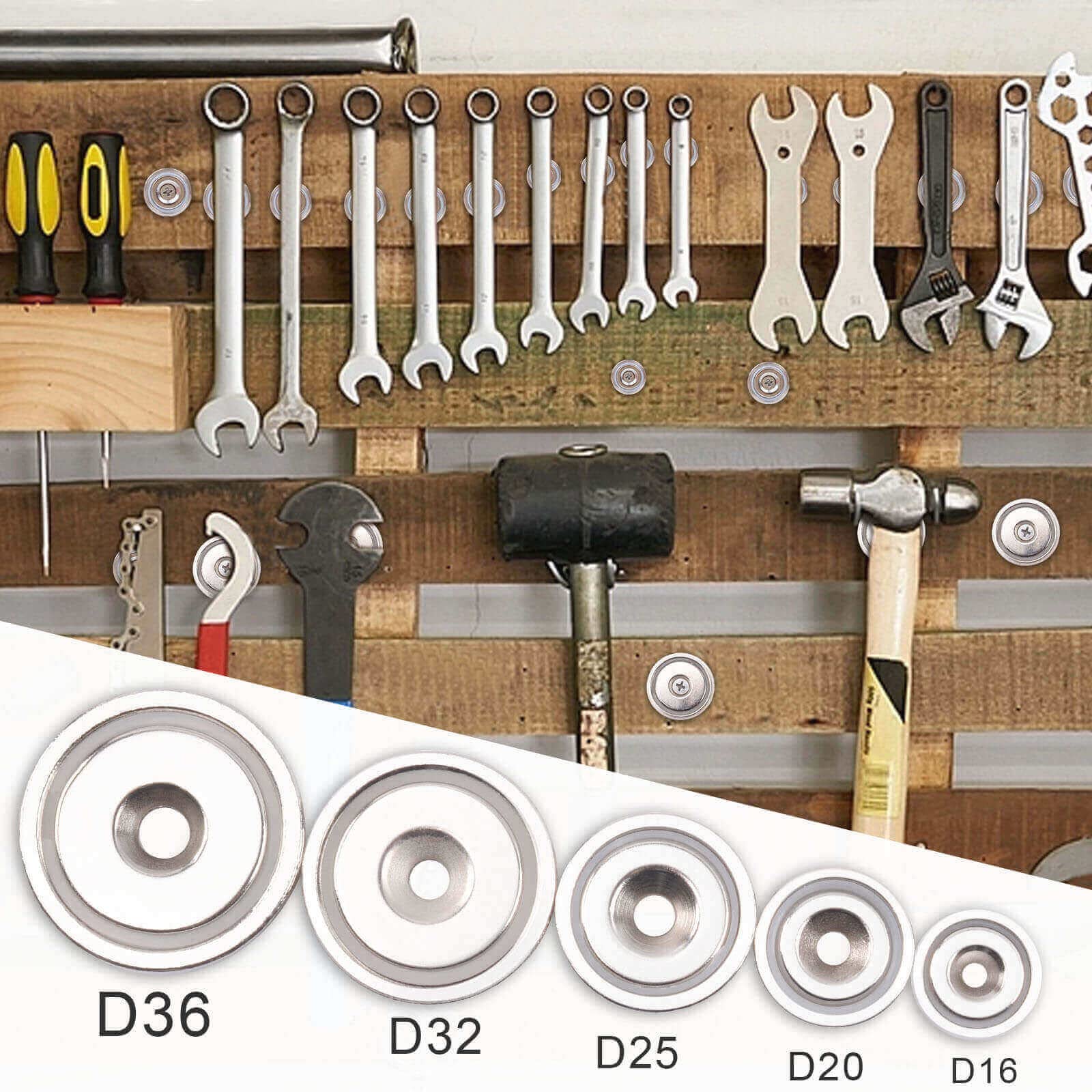 ["【Widespread Magnet】Our neodymium magnets are perfect for DIY enthusiasts. You can attach these flat magnets to any non-metallic surface to hold kitchen utensils, tools like wrenches, hammers, nails, or pliers.","【Magnets Specifications】36x7mm (1.42x0.28inch), maximum magnetic force is 110lbs (50kg), 8 pieces of magnets with holes and screws included. High-quality strong magnets (NdFeB), triple-layer nickel-plated, copper-coated, and nickel-plated with plenty of magnetic properties.","【Easy to Install】The magnet with screws can be easily screwed into wooden surfaces. You can easily attract countersunk screws to non-magnetic surfaces, keeping your tool room, kitchen, refrigerator, etc. clean and tidy.","【Reliable Quality】The flat magnet has an inner washer that can cushion the friction during installation and fix it more securely on the surface of the object. Our kitchen cabinet magnets provide a shiny, rust-free, and mirror-like surface, especially with good corrosion resistance and dimensional stability.","【Professional Neodymium Magnets Extra Strong】We strictly adhere to the standard production process and inspection procedures, and have dedicated teams for research and development, production, sales, and customer service."]