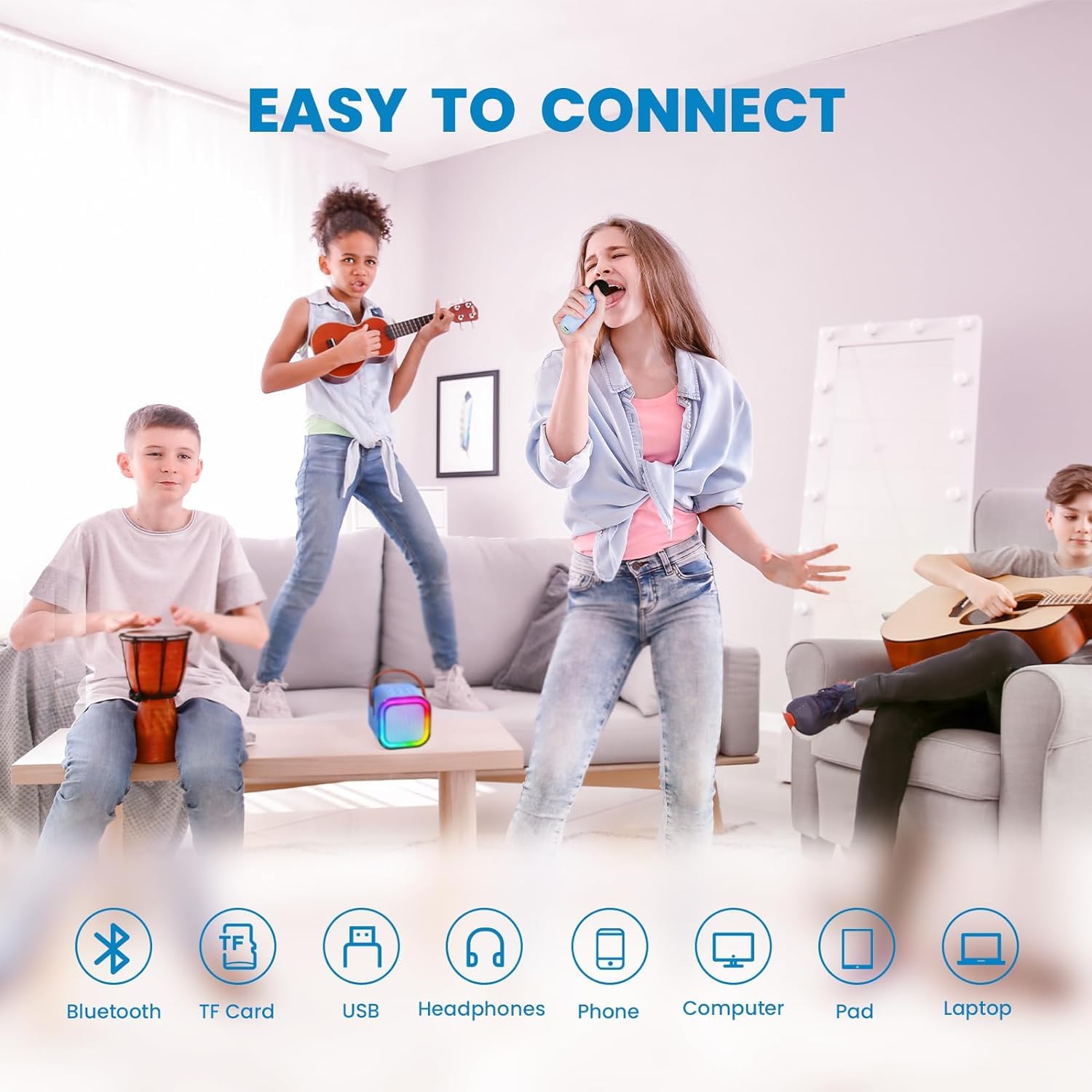 ["♪【Kid-Friendly Karaoke Machine】- This mini karaoke machine for kids is compact and super light, with easy-to-press buttons. Just set the stage to give your kids their own karaoke party.",