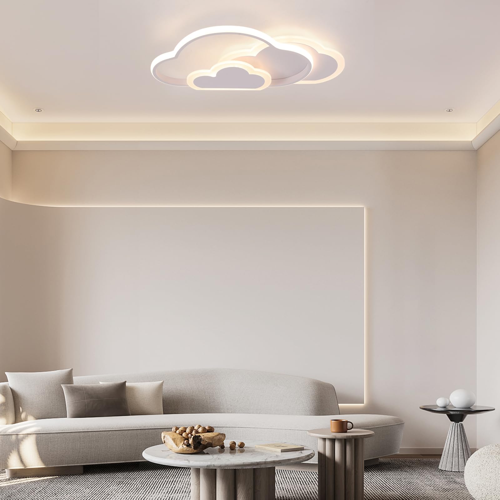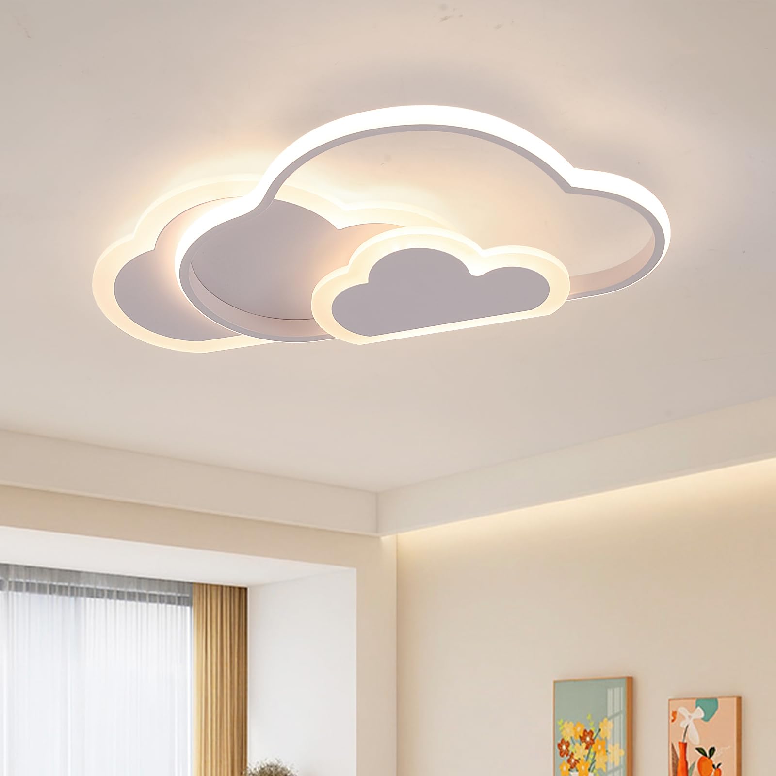 "Application: L52 * W31 * H6cm 36W 3000 Lumens Suitable for 10 ~ 18㎡. The creative cloud ceiling light is ideal for children's rooms, nurseries, bedrooms, studies, living rooms, and other decorative lighting.",