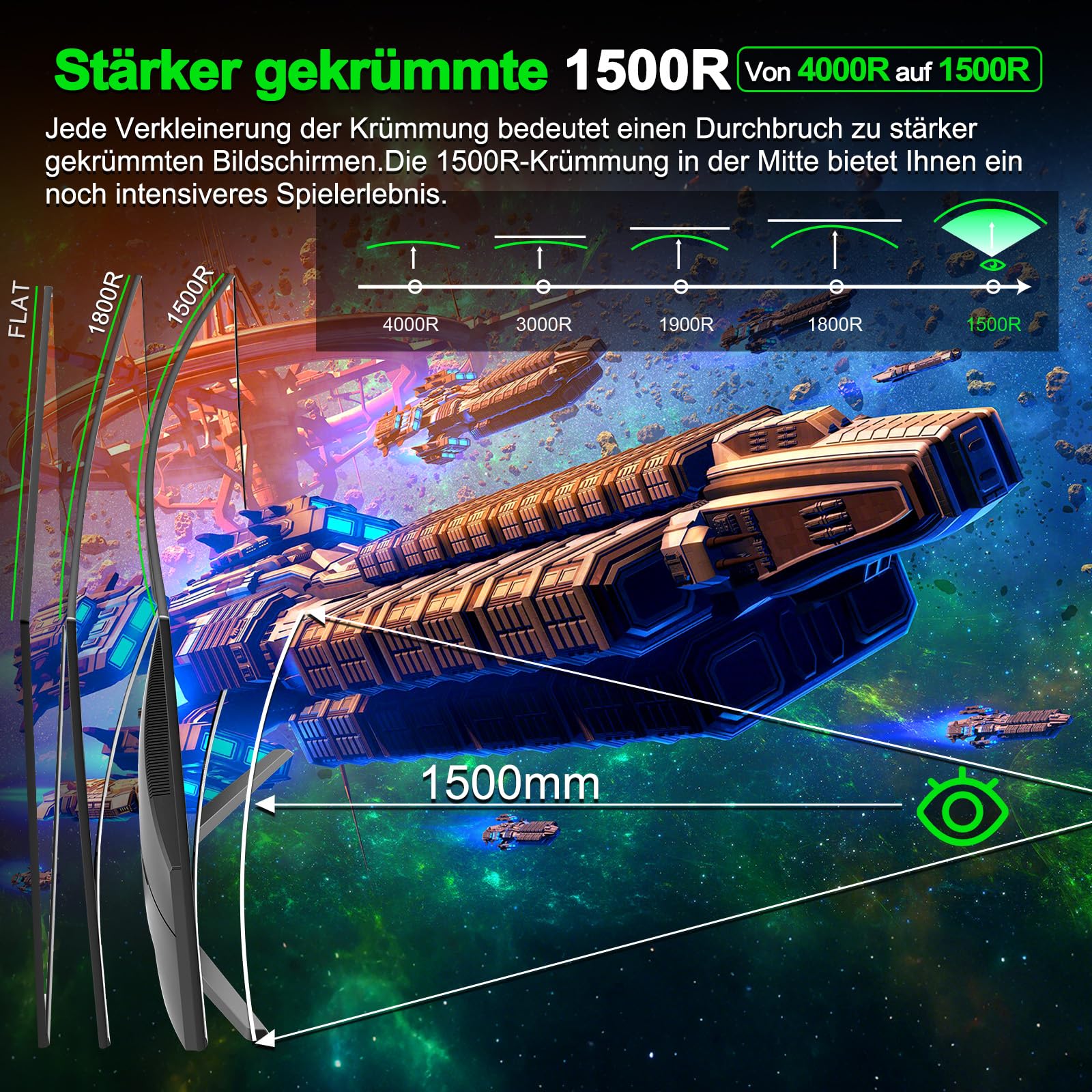 Minifire 27-inch Gaming Monitor, 180Hz, Curved Gaming Monitor, Speakers, 1500R, 1ms, sRGB130%, FHD 1080P Computer Screen, VESA compatible, Eye Care Adaptive Sync HDMI & DP Ports (MFG27C1)