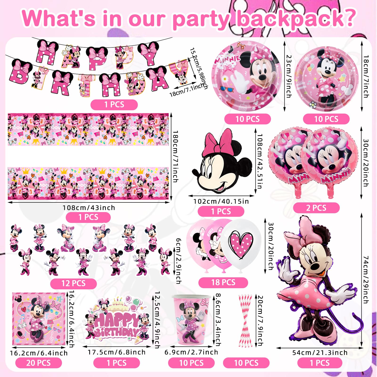 🎉 【Exquisite Design】The vibrant print and bright colors of our Minnie party accessories set will create the most festive atmosphere for you and your guests, giving the children a big surprise. Make your party unforgettable and impressive.