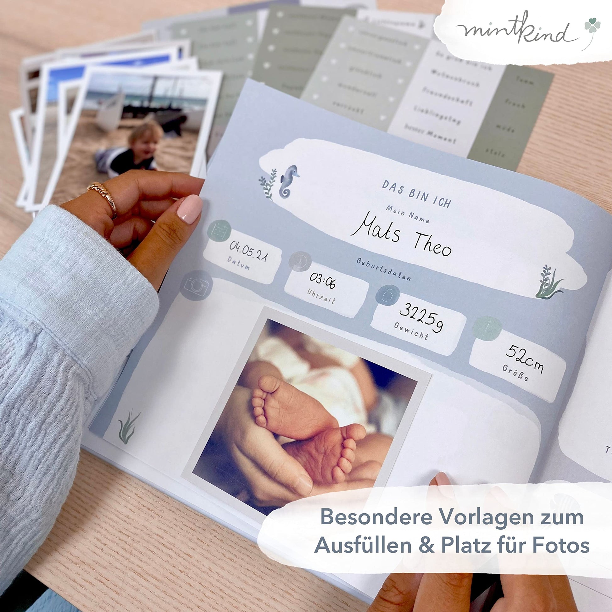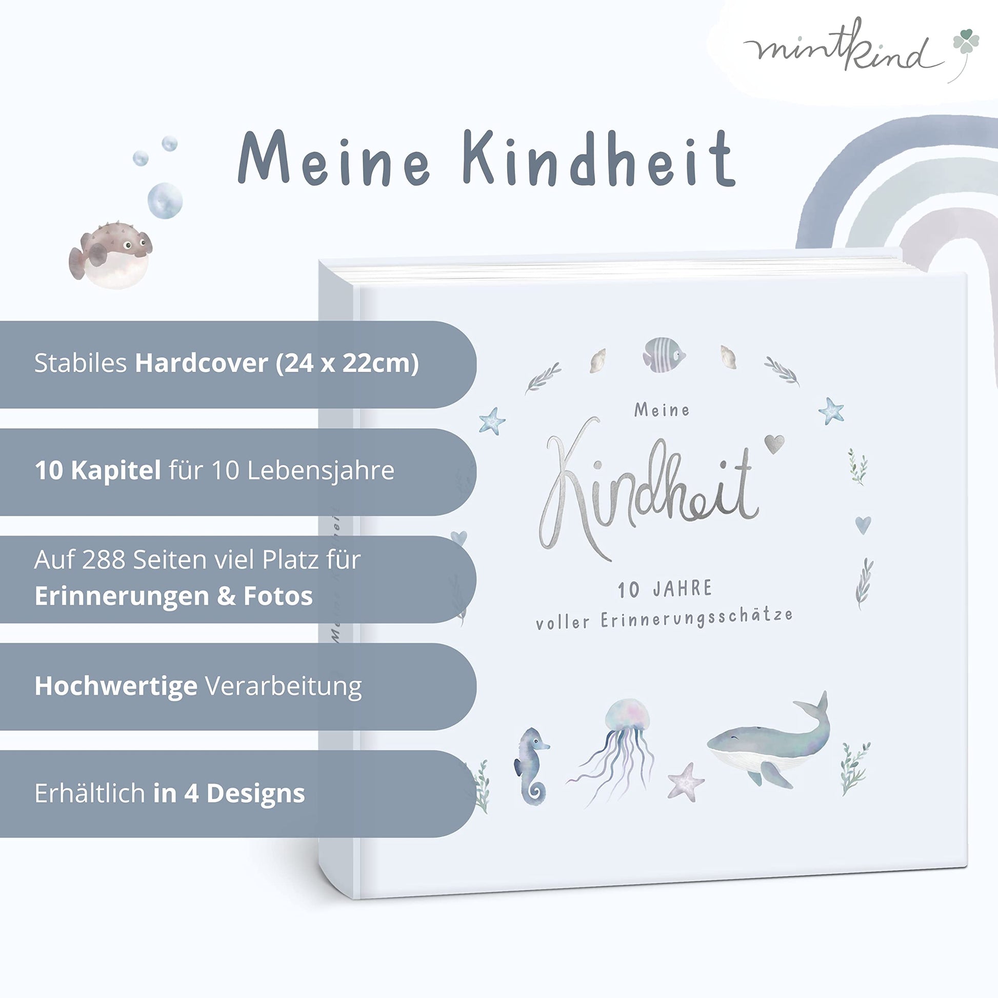 mintkind® "My Childhood" Memory Album Whale Design I Your First 10 Years I Photo Album Children's Gifts for Birth Baby Book for Entries | Children's Diary Album Memory Book Gift Child
