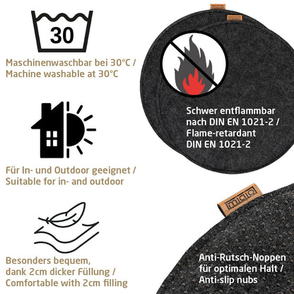 VERSATILE USES: The felt cushions are suitable for indoor or outdoor use. As outdoor cushions, they adorn your terrace, while indoors they bring coziness to any room. Whether in the living room, kitchen, restaurant, or waiting room.