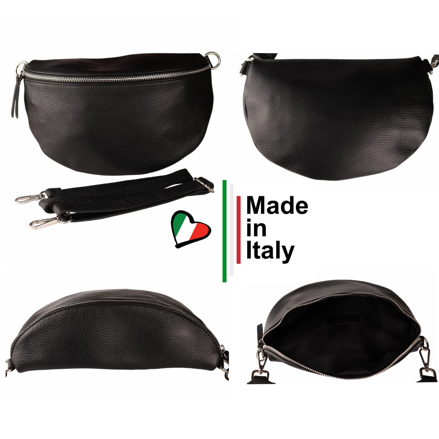 MIRROSI® Waist Bag for women, genuine leather, Made in Italy, shoulder bag, chest bag, crossbody bag (1 bag & 2 straps) (Black (NN Black Beige), Small bag (22x13x6cm))