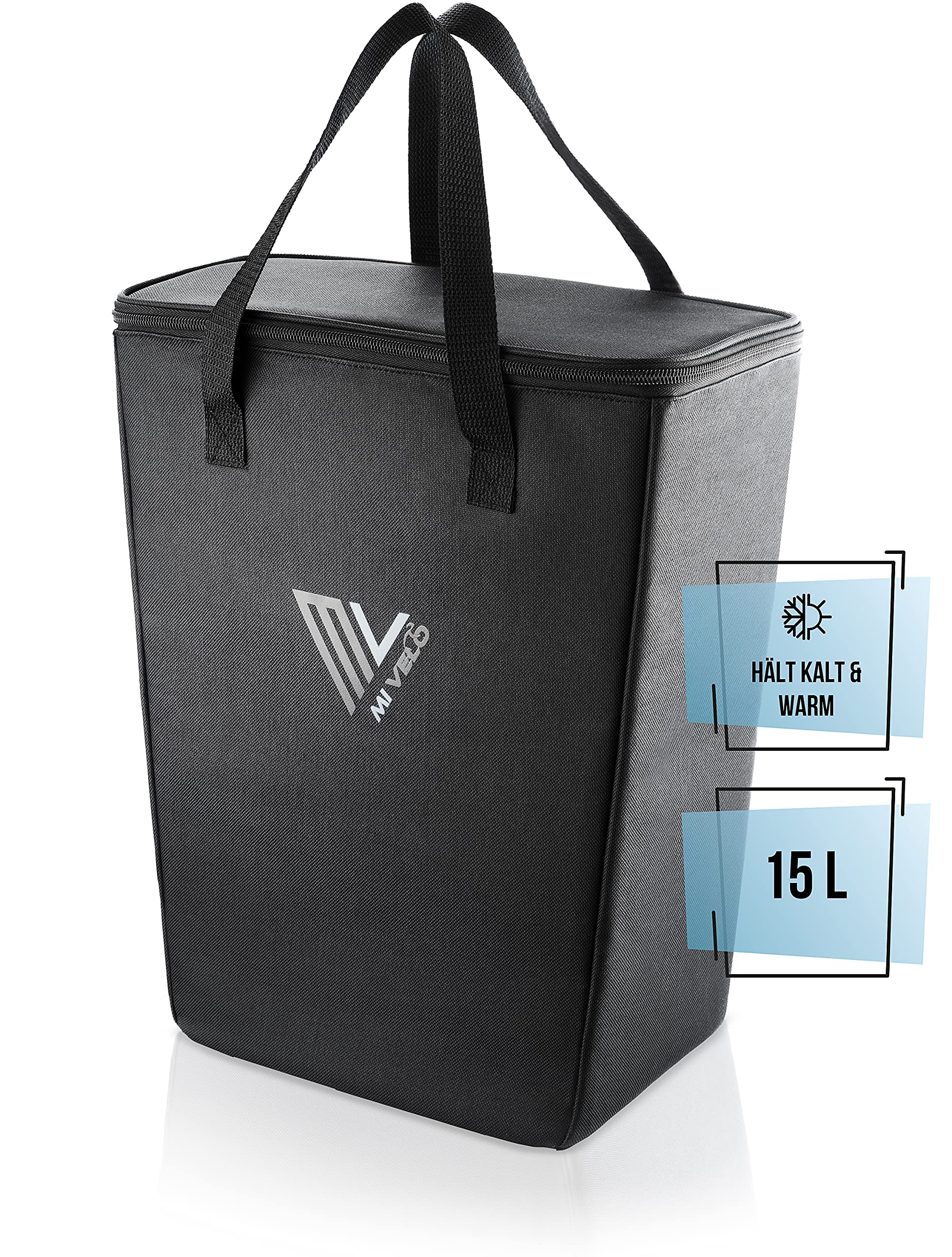 MiVelo - Insulated bike cooler bag - Insert for bike panniers rack - Foldable shopping bag - Picnic accessory - Carry bag (15L)