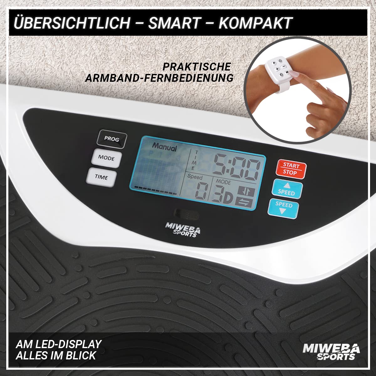 Miweba Sports Fitness 4D Wave Vibration Plate MV300 | 3 Horsepower Engine - 800 Watts - Wrist Remote Control - Bluetooth - Weight Loss - Fat Burner - Home Fitness Equipment (Black)