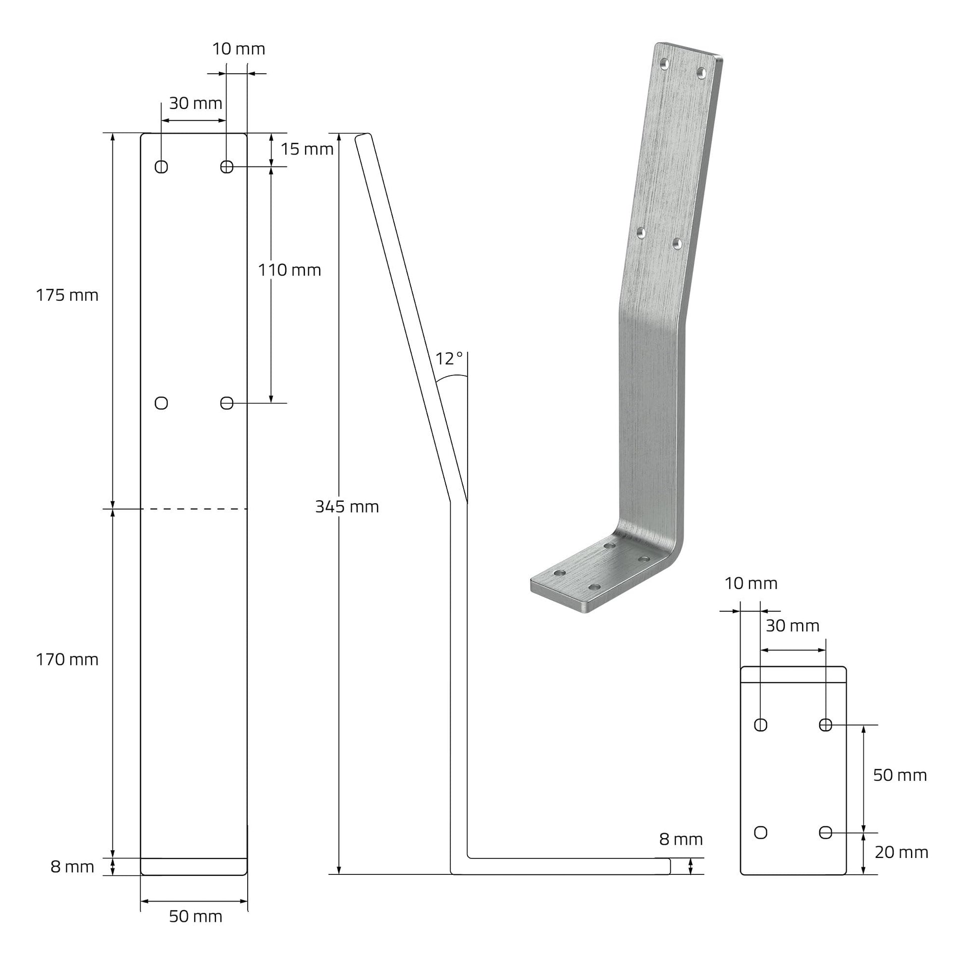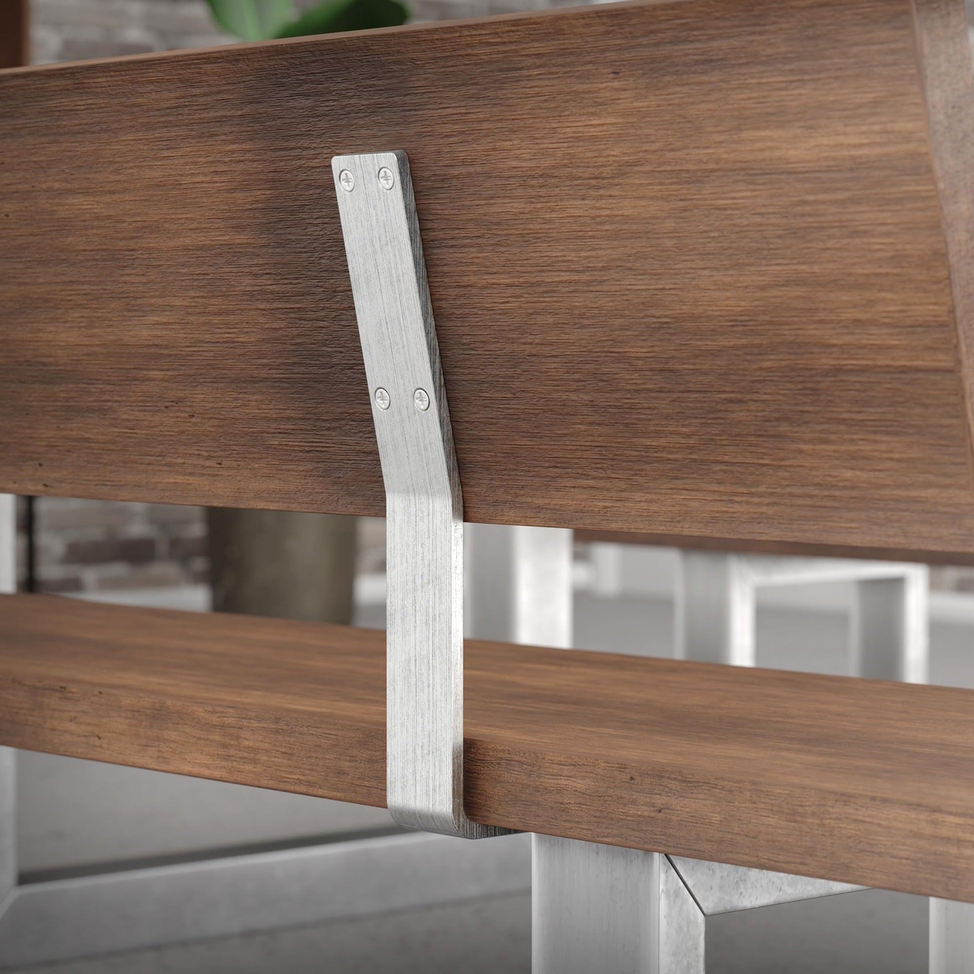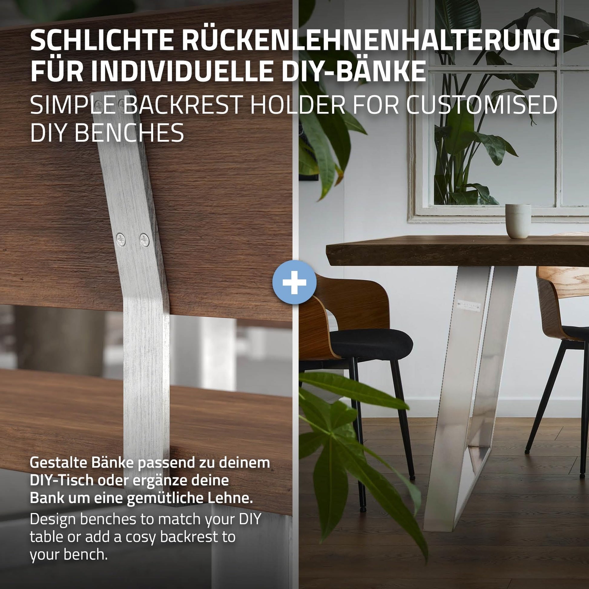 ["FOR YOUR DIY FURNITURE PROJECT - The metal backrest bracket is designed for screwing onto chairs, benches and other seating – essential for all hobby carpenters! For optimum stability, we recommend using two brackets.","ERGONOMIC 12° ANGLE - 12-degree tilt angle ensures an ergonomic seating position - allowing you to always lean back comfortably. Whether it's a chair, bench or bed backrest, our bracket will always help you achieve an optimal seating position.","HIGH-QUALITY CRAFTSMANSHIP - The backrest bracket profiles are made of high-quality stainless steel. The bench backrests are available in brushed silver. The brushed effect also provides additional corrosion protection. Curved, not welded for even more stability and durability.","EASY INSTALLATION - Thanks to pre-drilled, countersunk holes, the bench or bed backrests can be easily and elegantly mounted. The specially profiled mounting holes keep the screws invisible. The bracket, made of high-quality stainless steel, quickly and reliably connects the seat surface to the backrest.","UNIVERSALLY APPLICABLE - With a height of 345 mm, a width of 50 mm, and a flat stainless steel profile thickness of 8mm, it is versatile. The simple, timeless design can be easily combined in many ways." ]