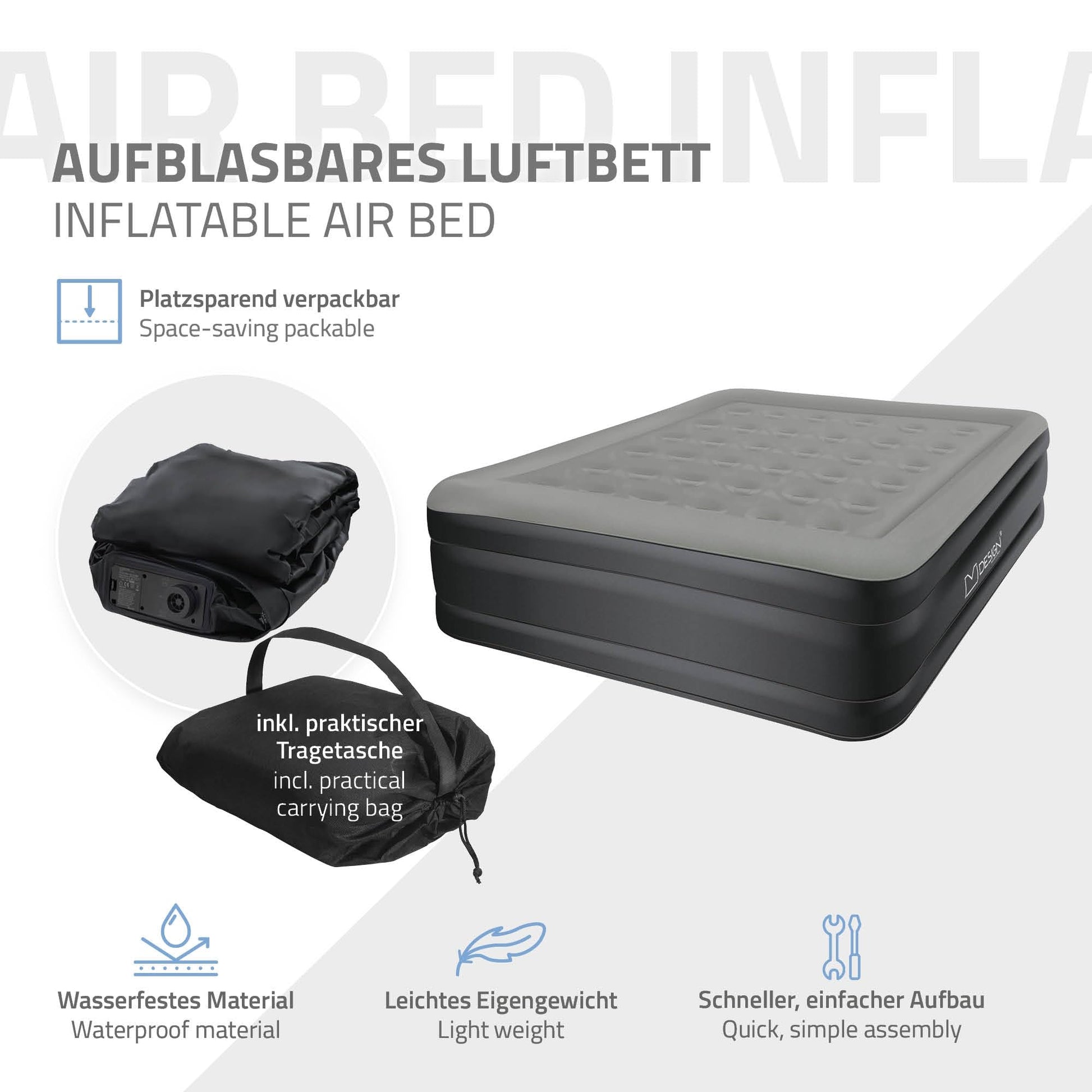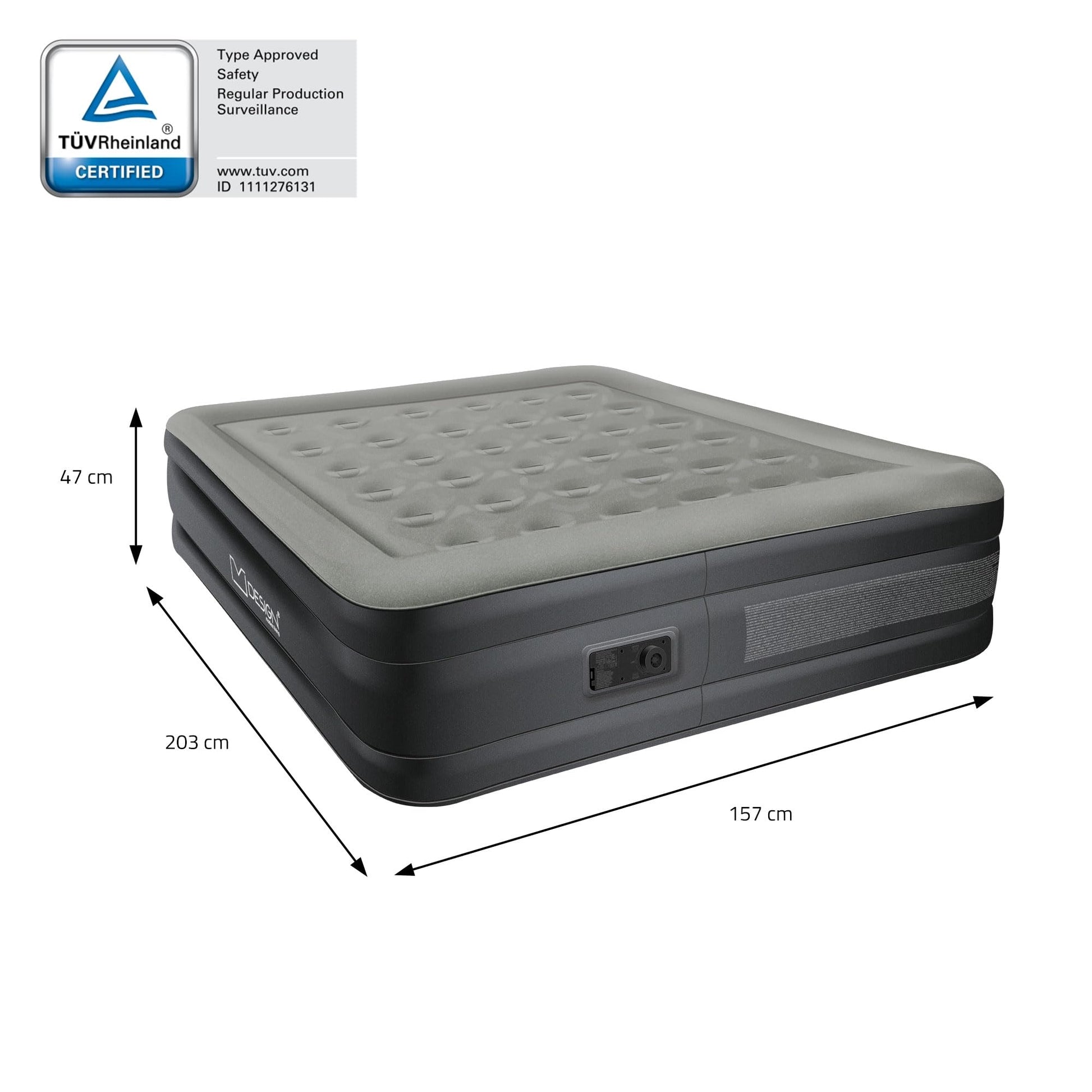 ML-Design air mattress for 2 people 203x157x47 cm Gray, TÜV certified, self-inflating air bed with electric pump 230V, inflatable mattress for camping, guest bed double bed + carrying bag.