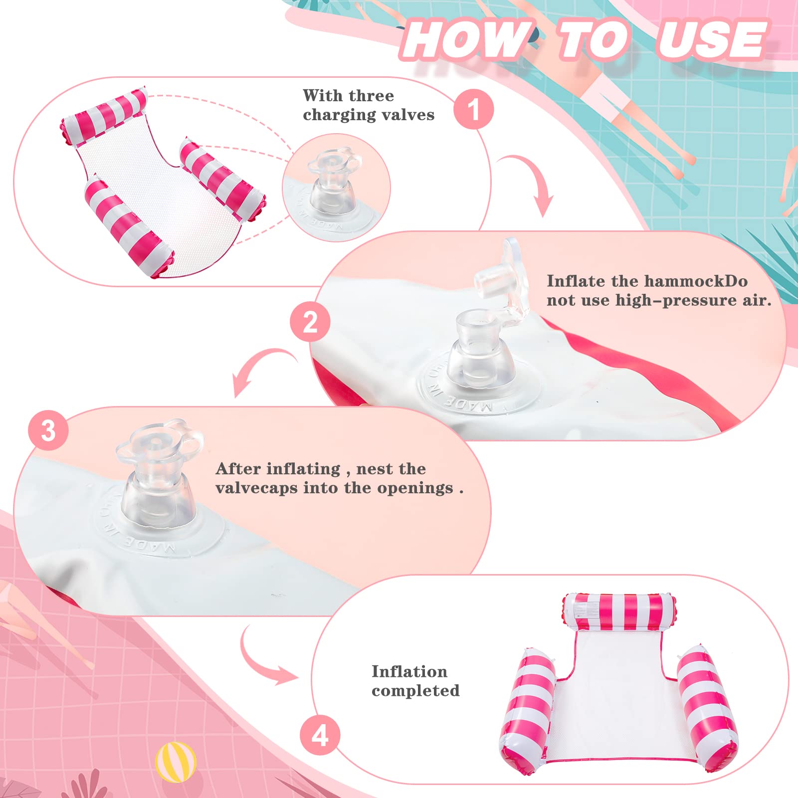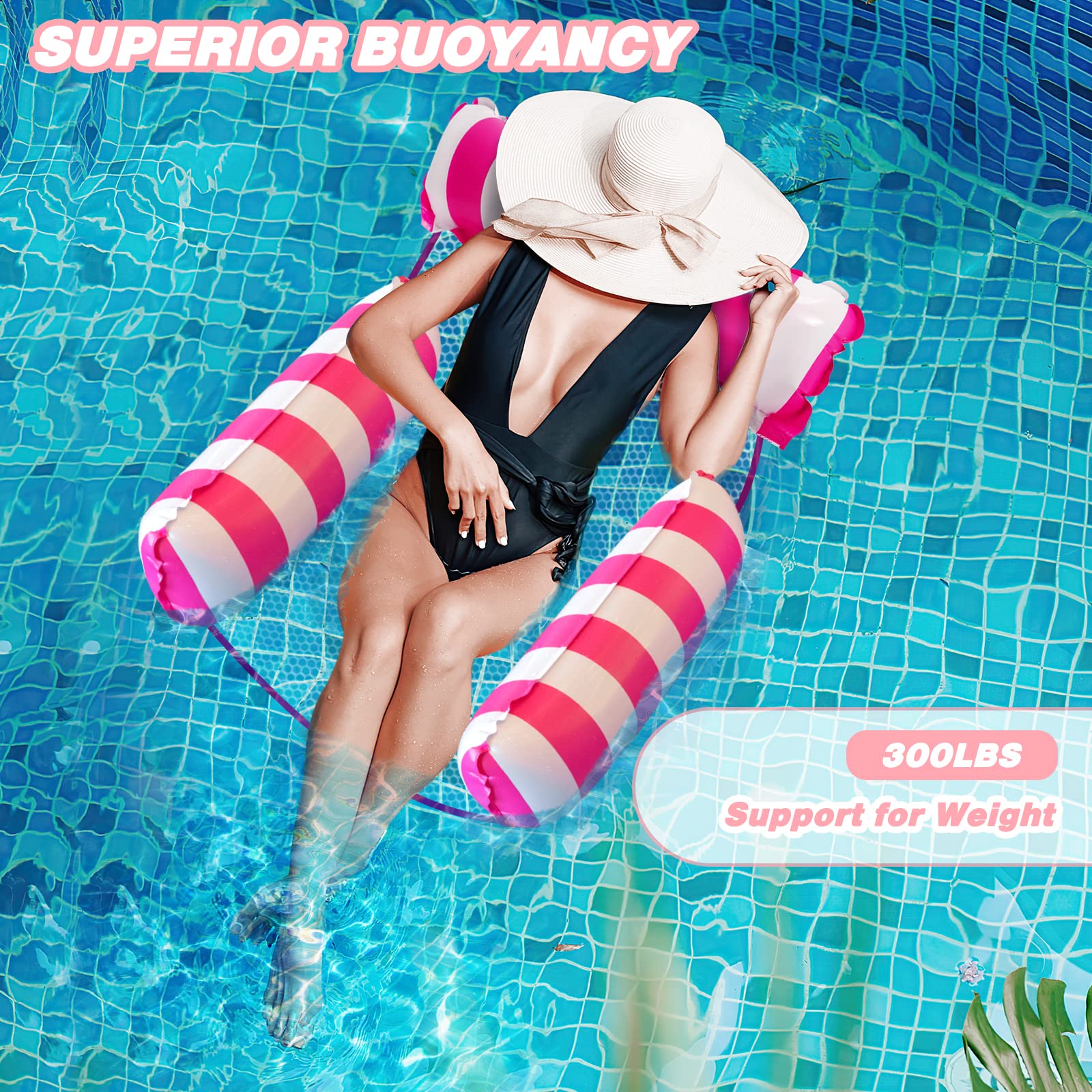 "💦🌊【Keep your body cool and float】: This pool float hammock consists of large buoyant cushions and a supportive mesh seat, and its semi-submerged design increases body contact with the water. Inflatable rafts help you feel, enjoy, and relax in this wonderful moment.