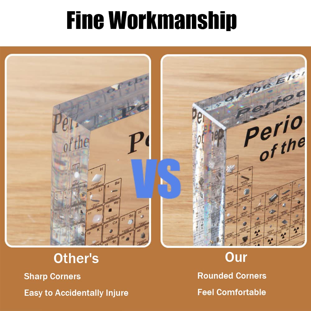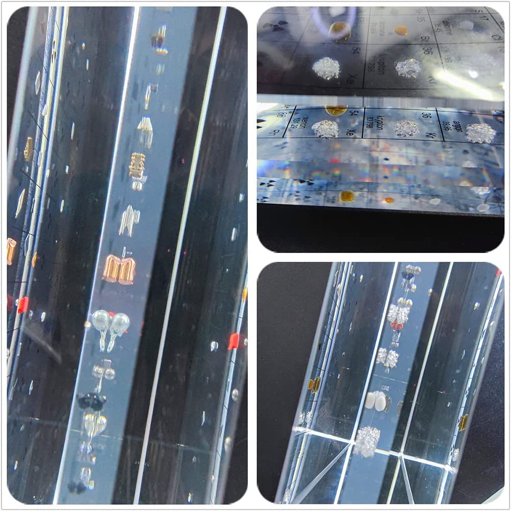 ["【83 samples of real elements】The periodic table embeds samples of real elements in clear acrylic resin, excluding radioactive and hazardous materials. Safe and harmless. Elements can be observed more intuitively.","【High-quality material】The periodic table of elements is made of acrylic, which is non-toxic and harmless, especially thick, with high transparency, and displays the elements very clearly. Rounded corners, pleasant to touch.","【Study Aid】The periodic table of elements measures 16 x 12 x 2.7 cm, exquisite and convenient, you can hold it in your hand anytime for learning and research. The perfect tool to help children improve their understanding and memory of the elements.","【Perfect decoration】Whether in school, classroom, home, bedroom, study, or office, the real periodic table of elements can be perfectly placed and decorated as an art craft.","【Best Gift】Great gift for teachers, students, children, friends, chemistry or science enthusiasts, etc. It can be used by teachers to provide professional teaching tools for classes and laboratories, to stimulate students' interest in learning."]