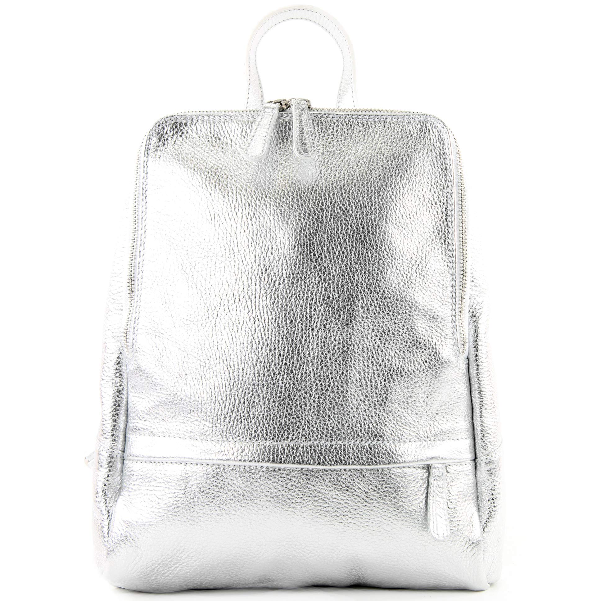 modamoda de T138 women's leather backpack handbag handmade in Italy, color: silver