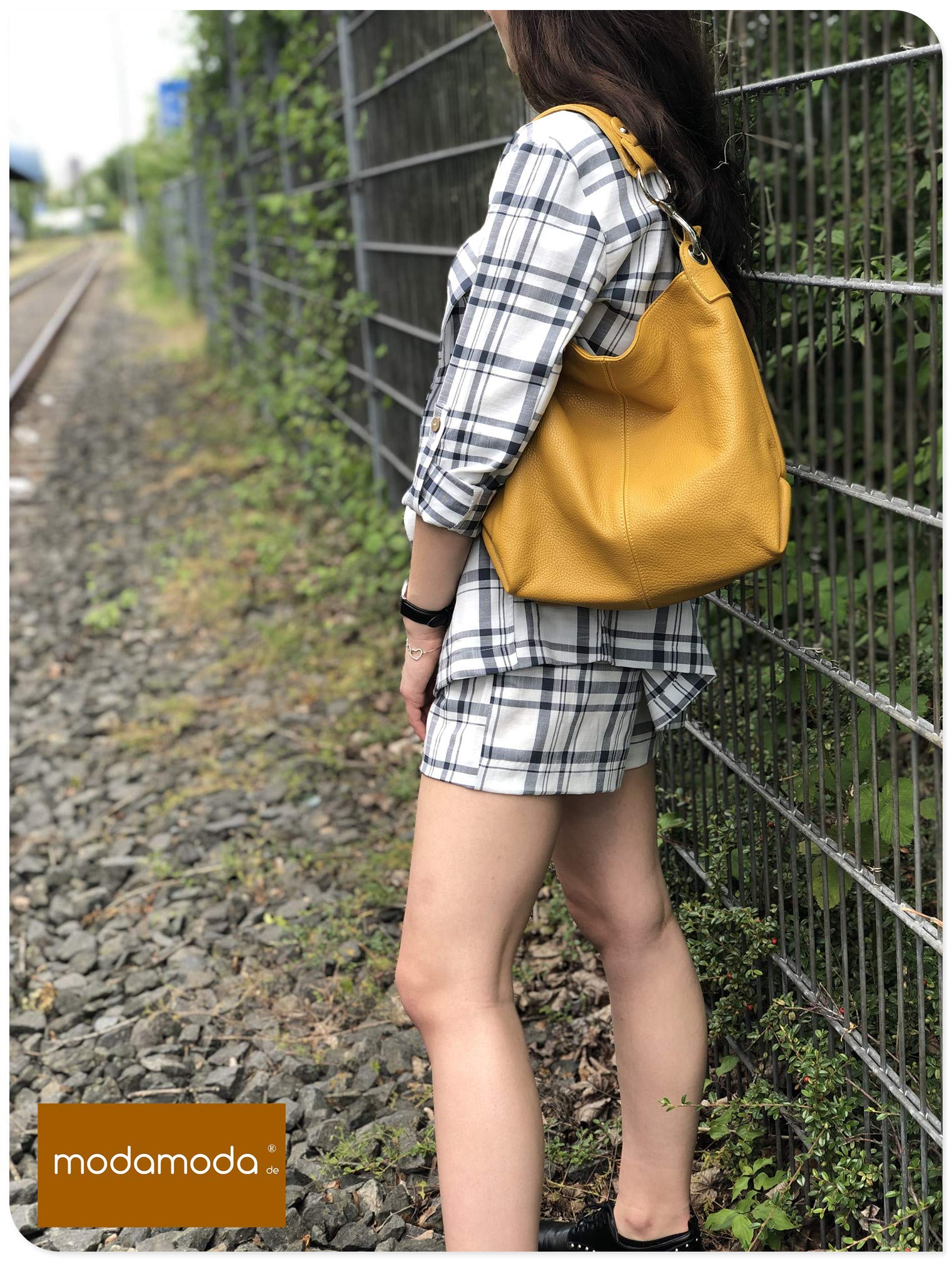 modamoda de T168 Women's Leather Shoulder Bag Handbag Medium handmade in Italy, Color: Red