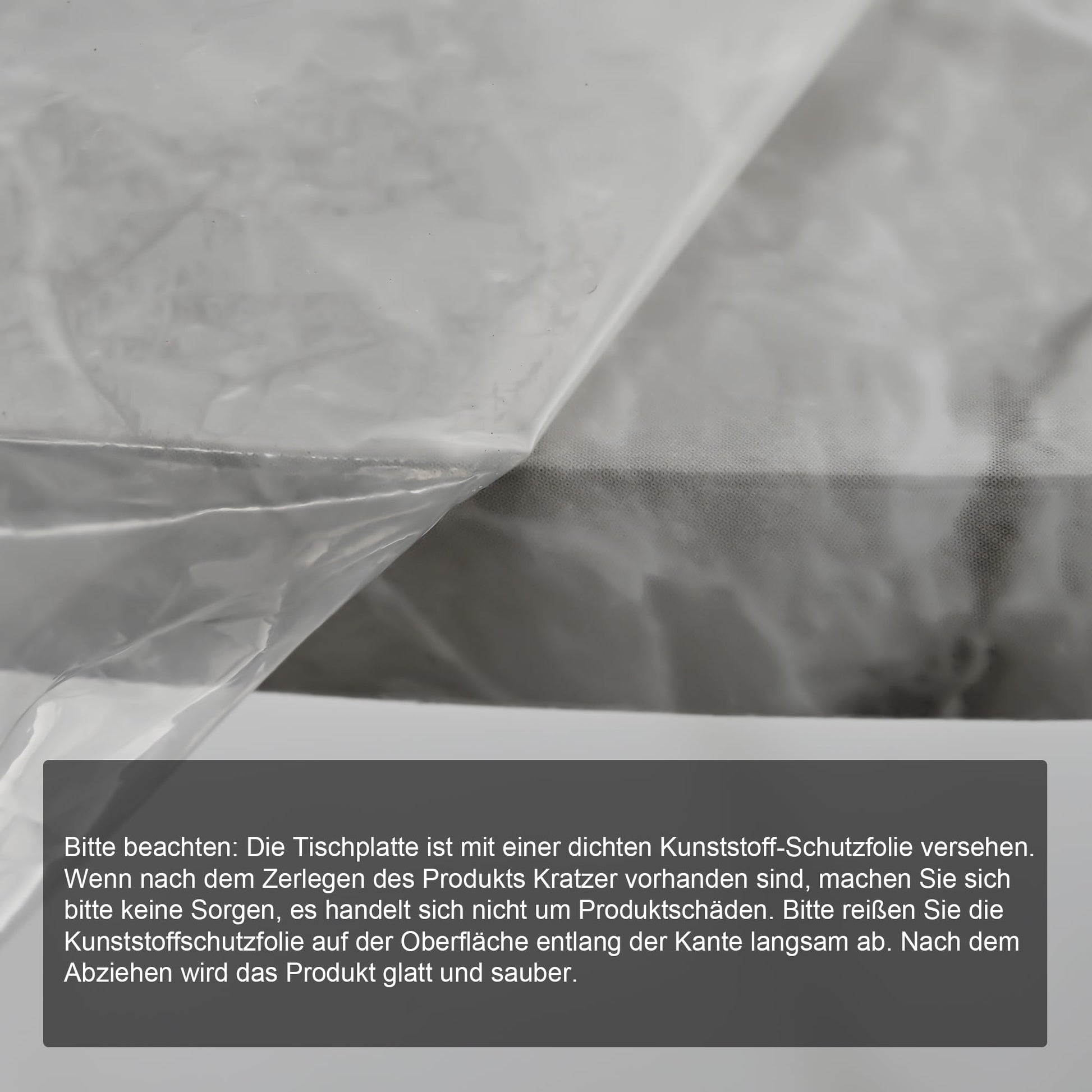 【PLEASE NOTE】- The tabletop is covered with a dense plastic protective film. If there are scratches after disassembly, please do not worry, as this is not product damage. Please slowly peel off the plastic protective film along the edge of the surface. Once removed, the product will be smooth and clean.