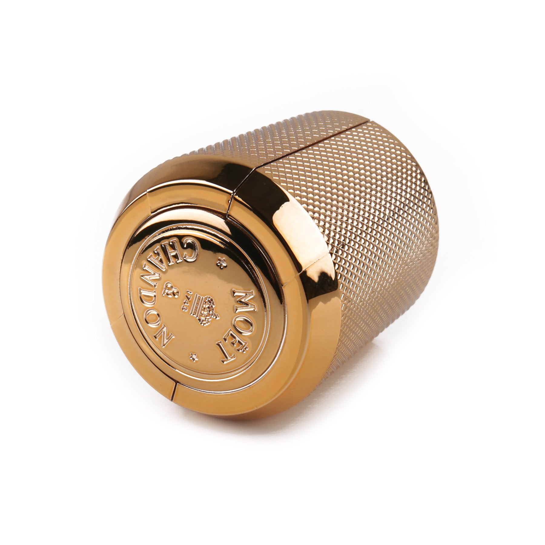 ["Gold-colored Moët & Chandon bottle stopper","Dimensions: approx. 2 inches height x 1.8 inches width x 1.8 inches depth","Weight: 51 grams - Material: Plastic/Rubber","Prevents the escape of carbon dioxide and","keeps your exquisite Moët Champagne fresher for longer."]