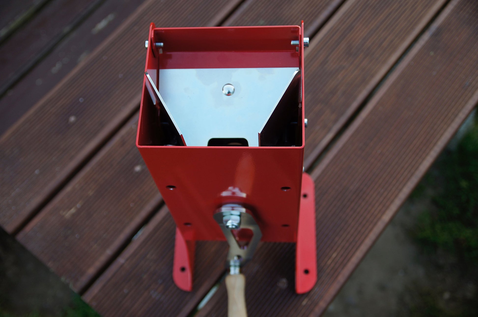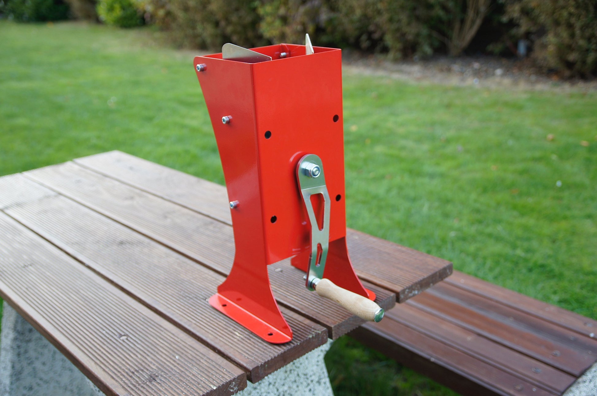 ["Knacki Junior (Model 2019 DonVito) in the program at FRUMACO now the little brother of Knacki from Feucht Obsttechnik. The manual nut cracker for hazelnuts is a device with easy handling.",