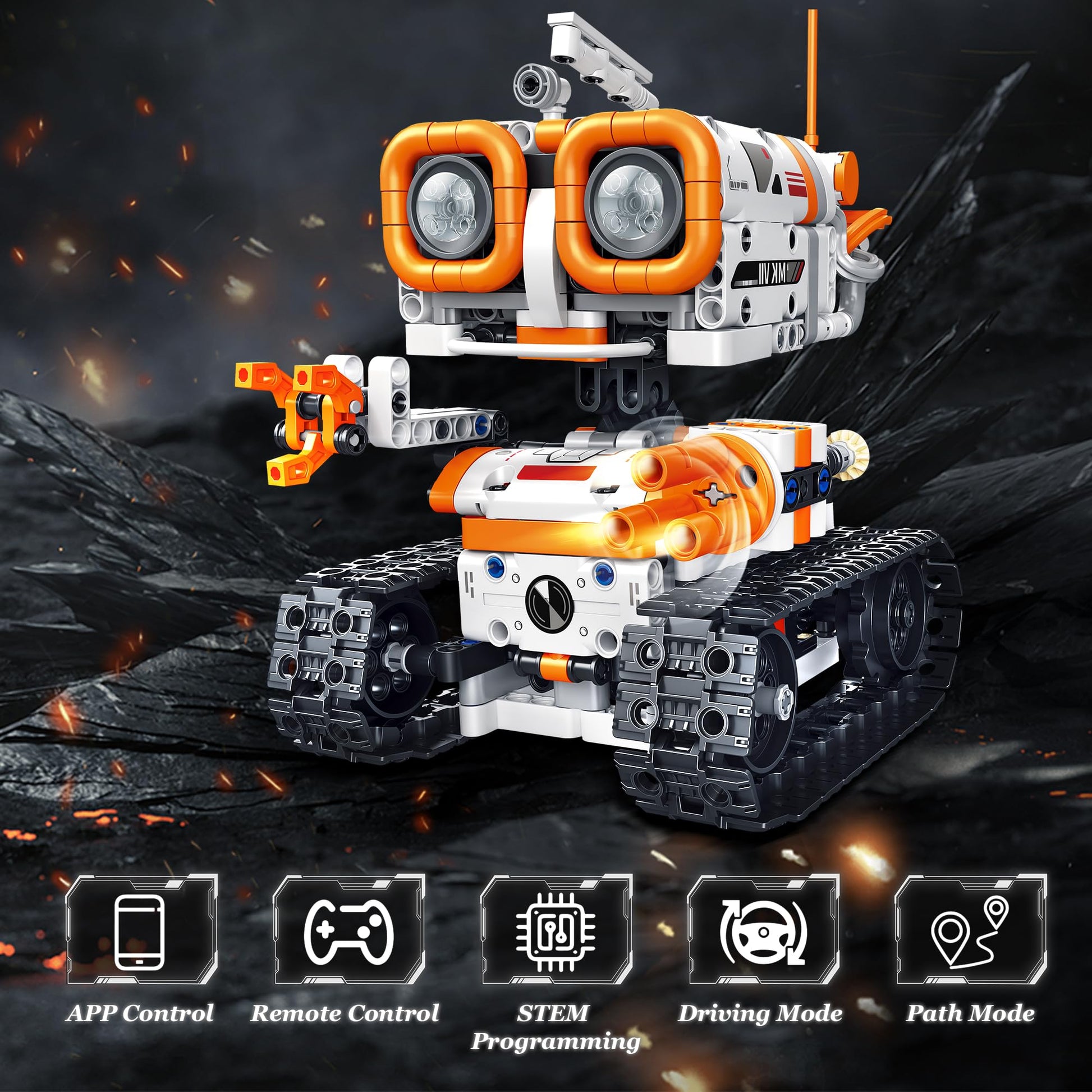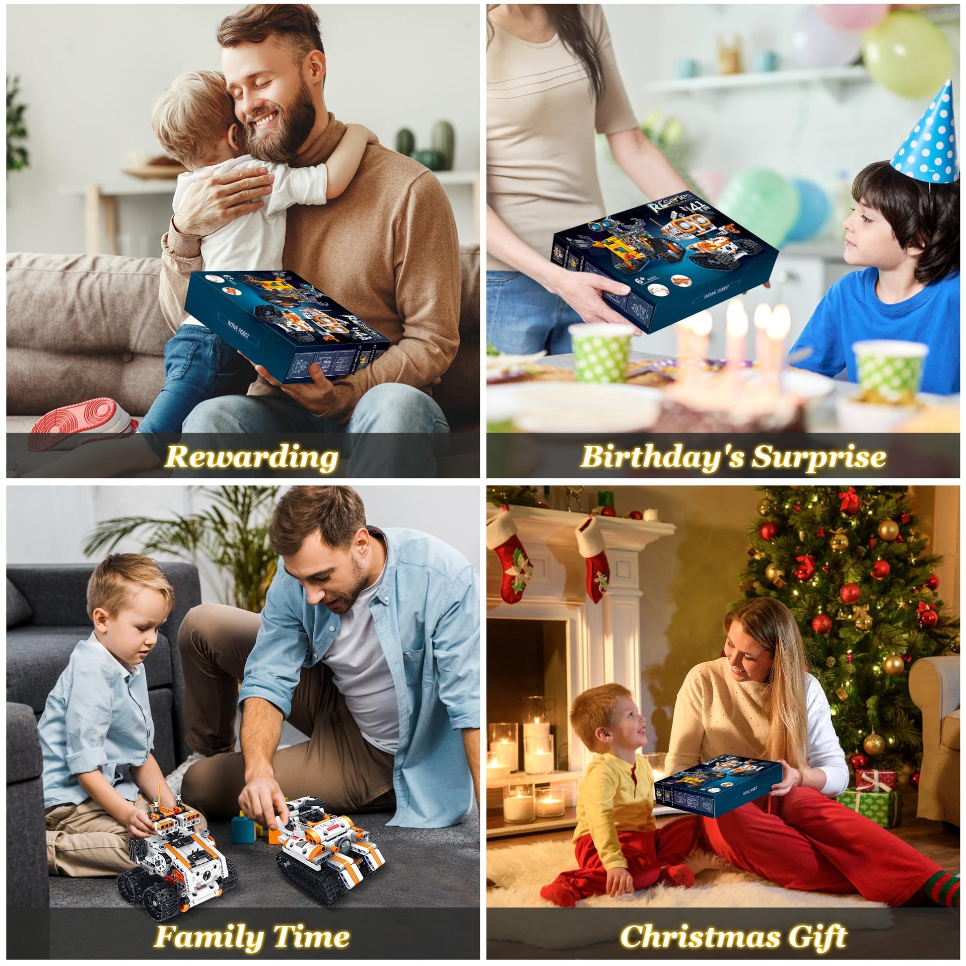 ["4-in-1 RC Building Robot Kit】Our robot building block set consists of 560 blocks that can be assembled into 4 different types of robot toys, providing 4 different building and playing experiences. (Only one model can be created at a time). Let your children's imagination run wild and give them hours of fun!","Unique Design】The combination of building blocks and remote-controlled robots, unique shape and a design full of technological, mechanical sense. Flexible joints, rotatable head and hands, wheels, can smoothly run on any terrain. Children can understand mechanics and movement mechanisms during the assembly process and promote their creativity and imagination. Keep children away from screens.","Remote and App Control】This robot can be controlled by remote control or app connection to control the robot kit. The app can realize multiple remote control modes: driving mode, path mode, gravity sensor, and programming mode. Easy and simple to use. Provides an unparalleled gaming experience!","Creative Toy】This is a creative toy for children aged 5 to 14, stimulating their imagination, helping them learn assembly, design, and play, and sparking their interest in programming concepts for early learning. Our building blocks are carefully made of non-toxic, high-quality ABS plastic, compatible and easy to connect, not easy to fall apart, and also wear-resistant and durable.","Ideal Gift for Kids】Exquisite packaging, cool robots, and the creativity of the building blocks and robots make it a dream gift for children. Suitable as a gift for boys or girls aged 5 to 14. Ideal for birthday gifts, Halloween, Christmas, Children's Day, and other festivals"]