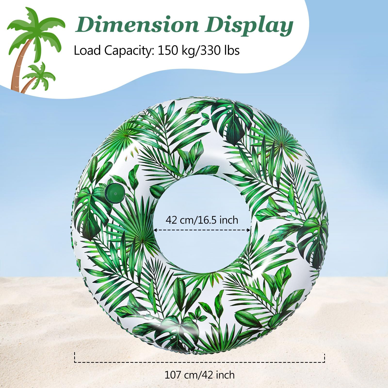 MoKo Adult Swim Rings, Inflatable Swimming Ring Water Game Ring, Large 107 cm Swim Ring Air Mattress Pool Toy Water Toy for Beach Pool Outdoor Summer, White & Green Leaf