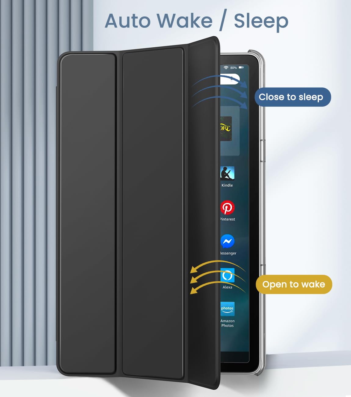 Auto Sleep/Wake: The Amazon Fire Tablet 11 Max automatically wakes up or goes into sleep mode when you open and close the cover. You can easily access all functions and controls. Strong magnets easily close the cover and prevent accidental opening.