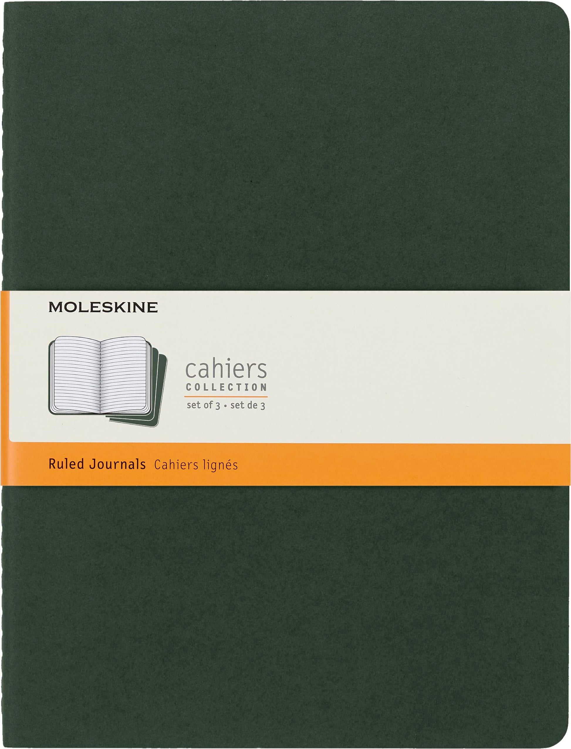 Moleskine - Cahier Journal - Set of 3 notebooks with lined pages - Cardboard cover with visible cotton stitching - Myrtle color - Very large format 19 x 25 cm - 120 pages.