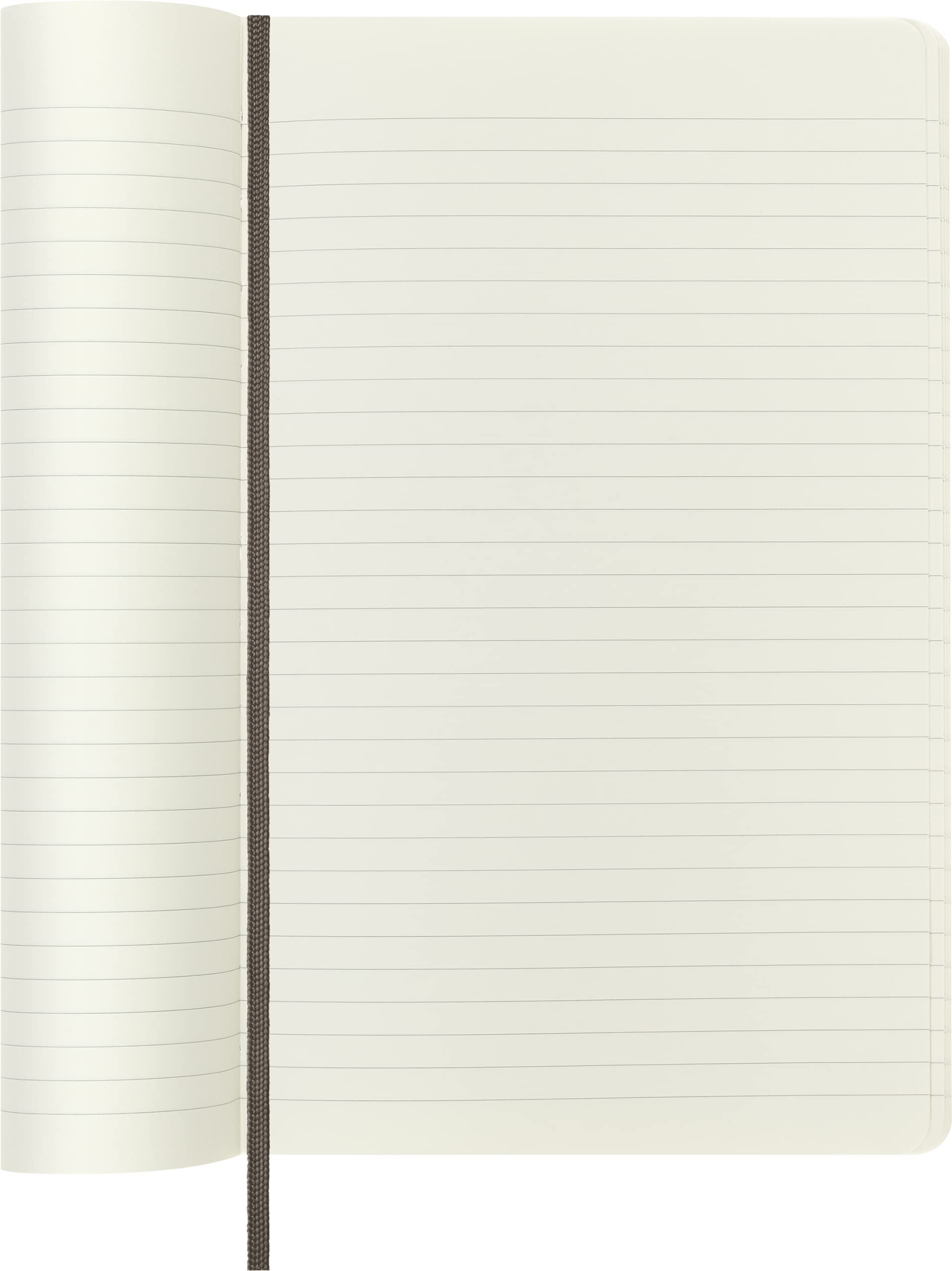 ["Colorful, classic notebook with soft cover","Rounded corners","Elastic closure band","Ivory Moleskine paper","Matching bookmark ribbon","Paper: 70 g/m², acid-free, ivory, lined"]