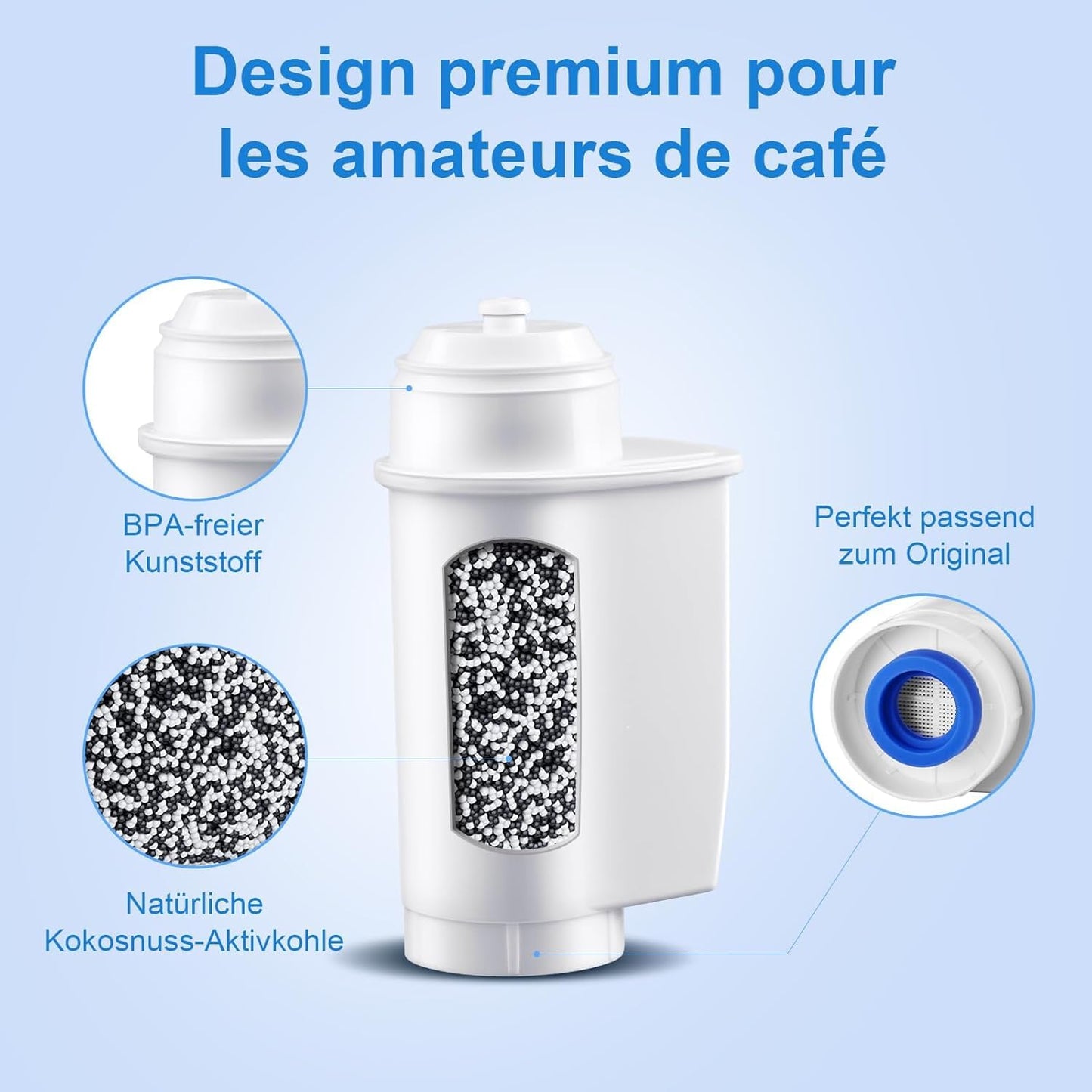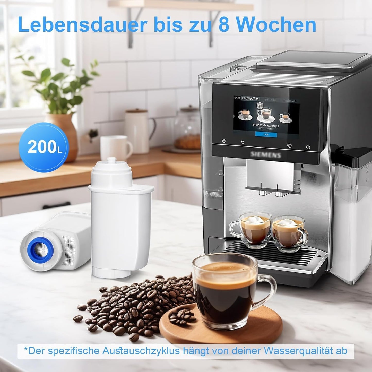 Effektive Filtration: The water filter for coffee machines removes up to 99% of residual chlorine and heavy metals, significantly improving water quality. At the same time, impurities are effectively removed, optimizing the taste of coffee and protecting the internal components of the device.