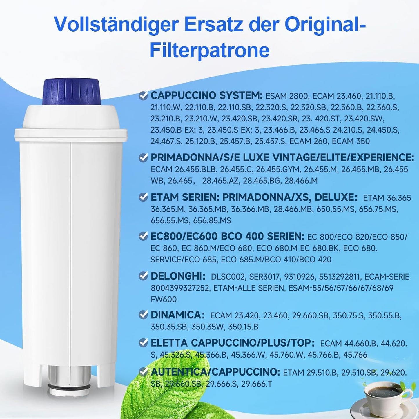 ["Esatzfilter kompatibel mit De'Longhi Kaffeemaschinen. Auch passend für andere Modelle. Bietet kostengünstige Alternative."]