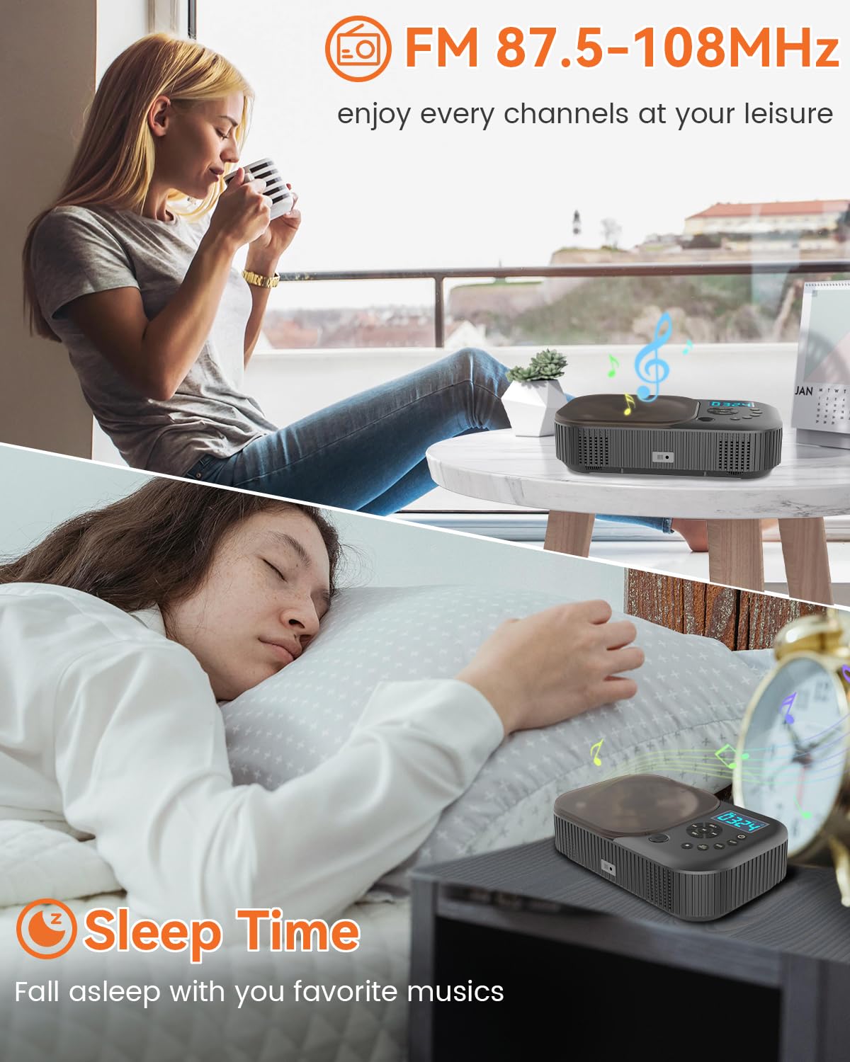 ["Radio with CD Player"] The Monodeal CD Player Boombox CD318 features a built-in FM radio that supports 87.5 MHz–105 MHz. By pressing the button, you can switch to FM mode and listen to weather information, news, traffic, and music from all channels at your convenience. The radio with CD player automatically searches and stores all available radio stations.