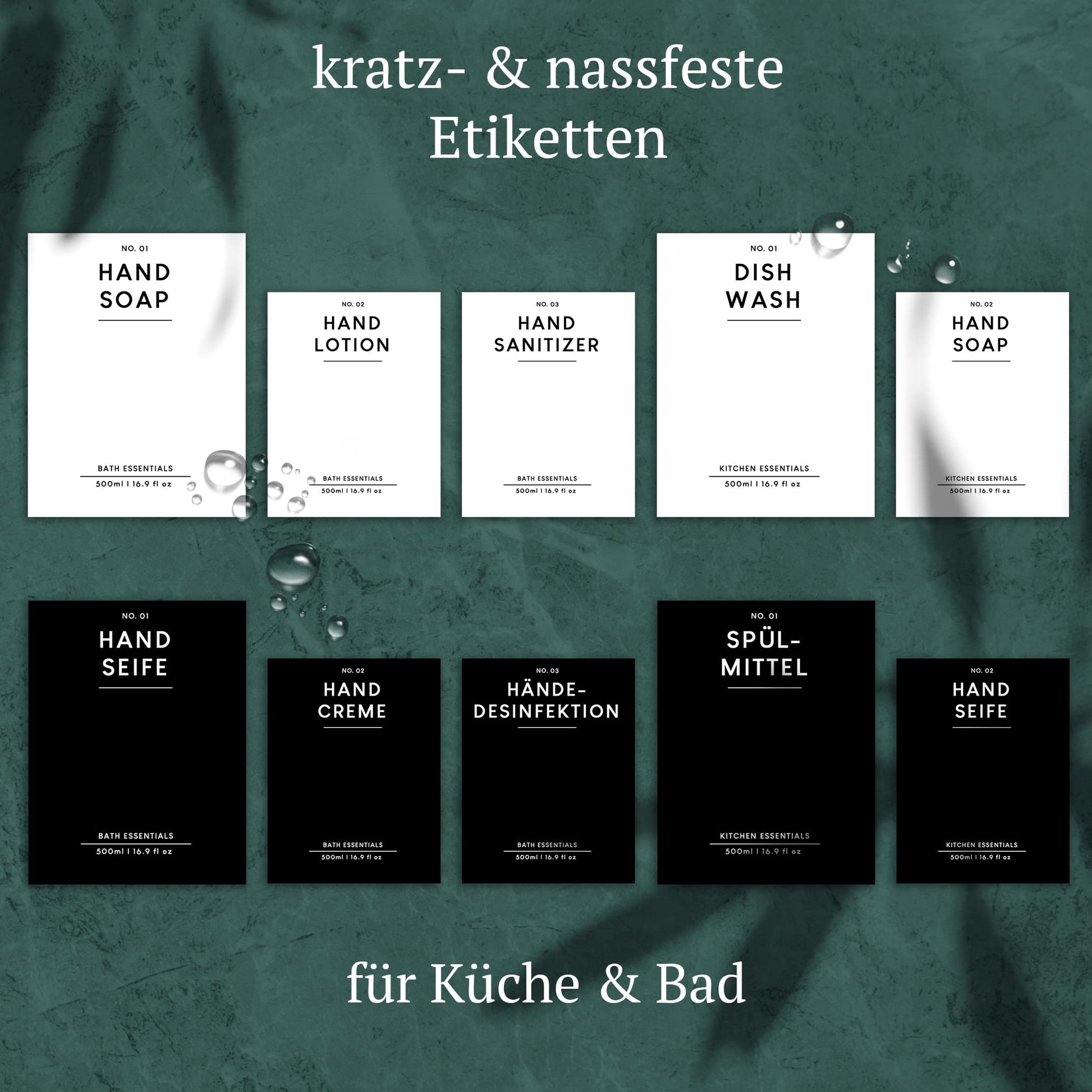 INDIVIDUAL & MINIMALISTIC 10 water-resistant stickers in Scandi look are included in the package. High-quality vinyl stickers in black and white. Choose whether you want to decorate the bottles with the included stickers in German/English or your own.