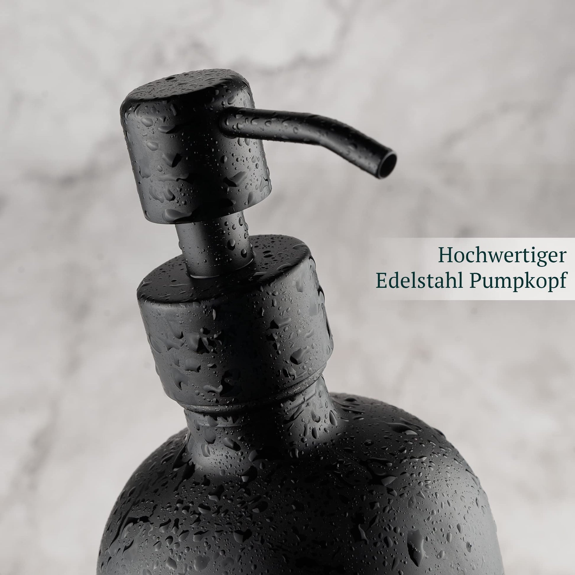 MONOKO 2-pack soap dispenser in black matte glass with tray | 500/250ml kitchen dish soap dispenser | refillable bottles | stainless steel pump head | pump bottle + sticker