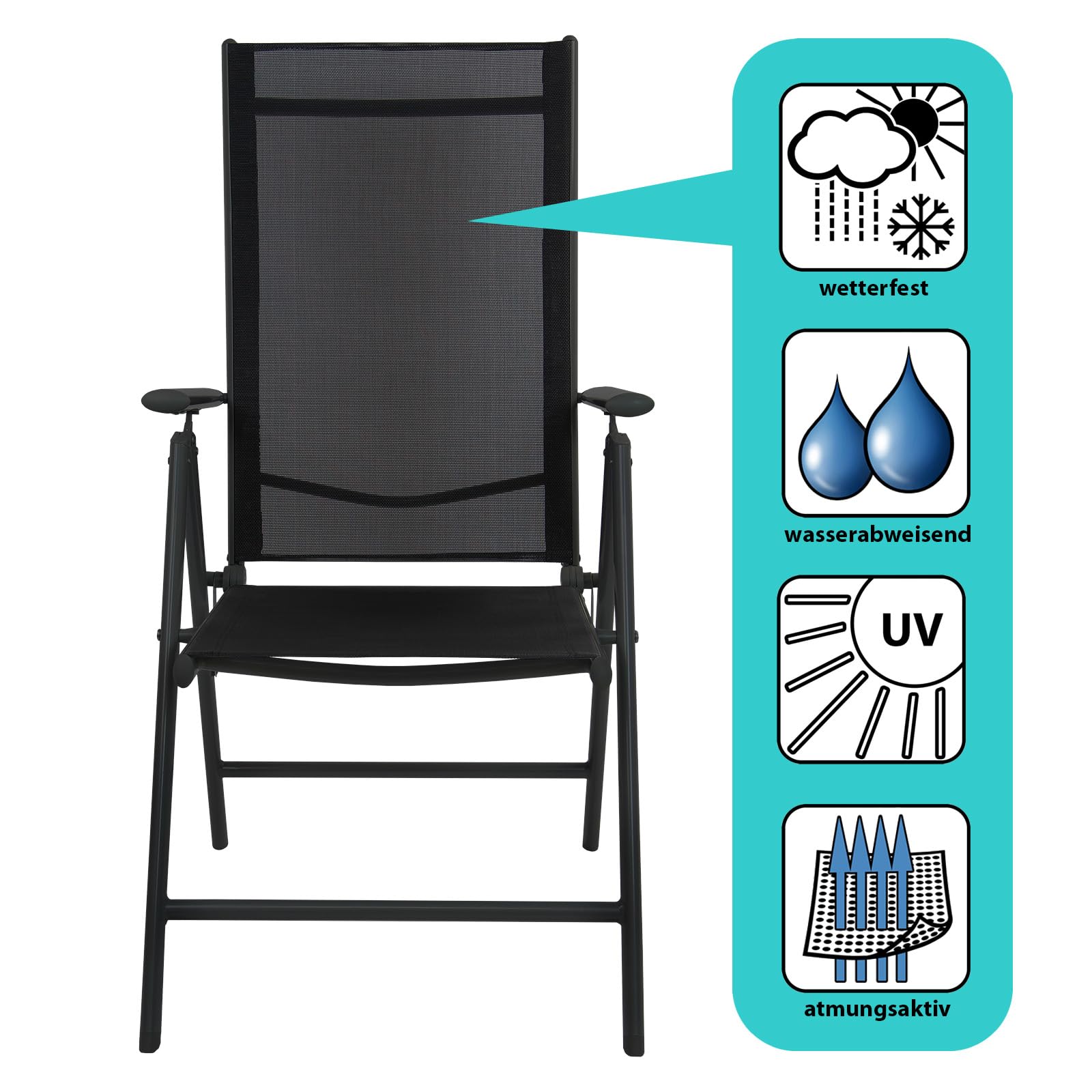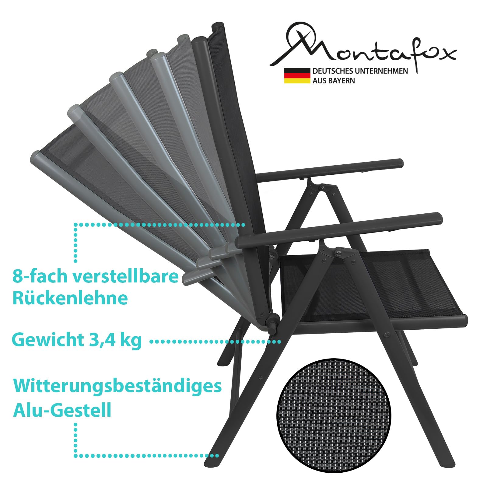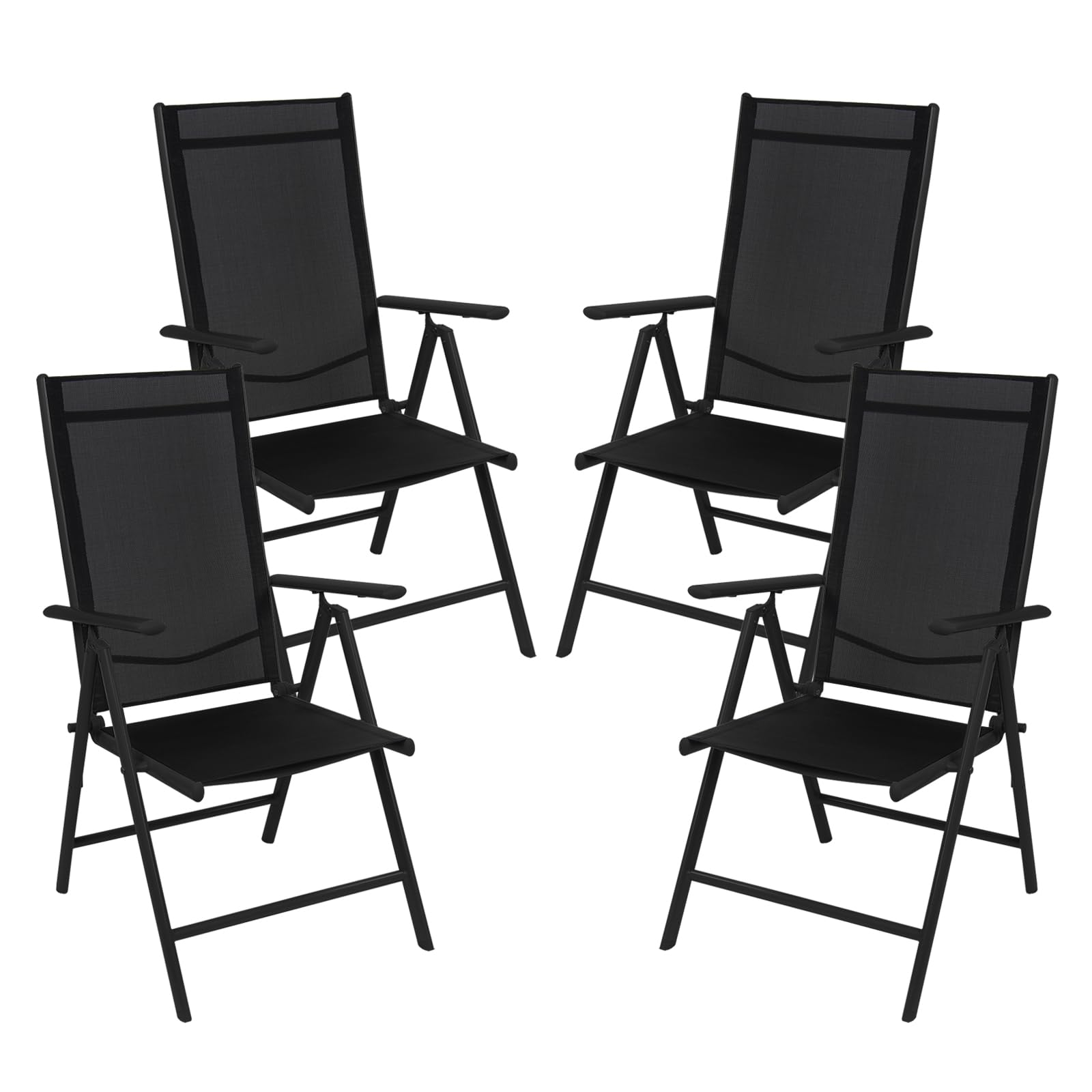 Montafox Folding Chair Set Balcony Chairs Aluminum Garden Chair Adjustable Foldable Load Capacity 120 kg Outdoor High-Back Aluminum Folding Chair Double Pack Balcony Terrace, Color:Black, Quantity:4 Pieces