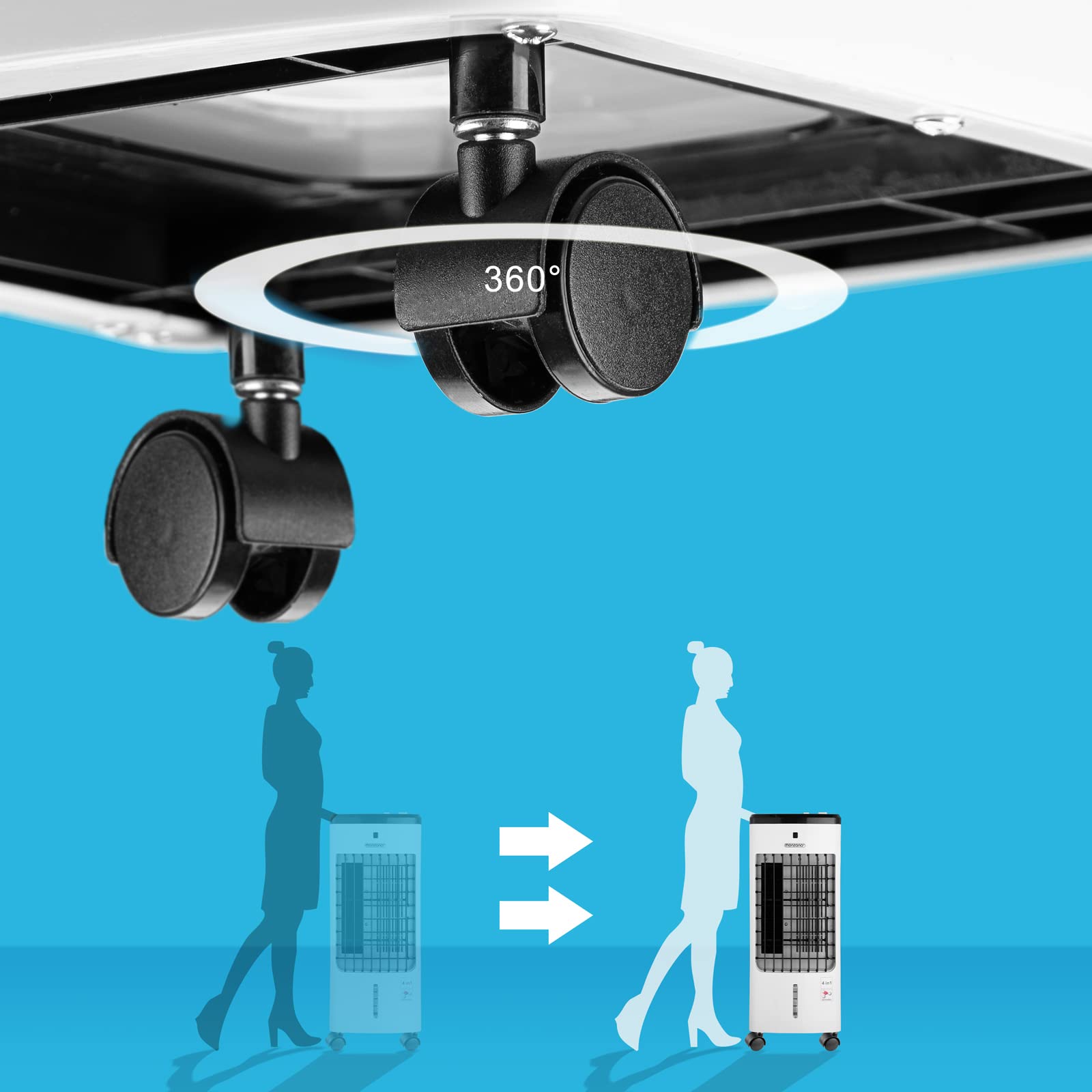 ["PERFECT COOLING: The mobile air cooler from Monzana provides the perfect cooling with its 4 functions in the summer. With 60W, the device offers optimal performance with low consumption. Thanks to its design, it fits into almost any apartment.", "4 IN 1: The air cooler offers 4 functions in one. In addition to the fan, air cooling and humidifier, the device also has an ionizer. Dust particles are bound and cleaned, and unpleasant odors are neutralized.", "PRACTICAL: The 3.5L tank, thanks to 4 included cooling packs, ensures special cooling. In addition, unlike most other devices, it is possible to easily remove the water pump and thus completely remove the tank for emptying or cleaning.", "FUNCTIONS: In addition to 3 speed levels, the air conditioner also offers a swing function. With this, a three-dimensional air flow is created via the adjustable louvers, which ensures a larger coverage area.", "MOBILE: With the easy-rolling wheels and convenient carry handle, you can easily and freely move the device from room to room. The perfect cooling for hot summer days, exactly where it is needed."]