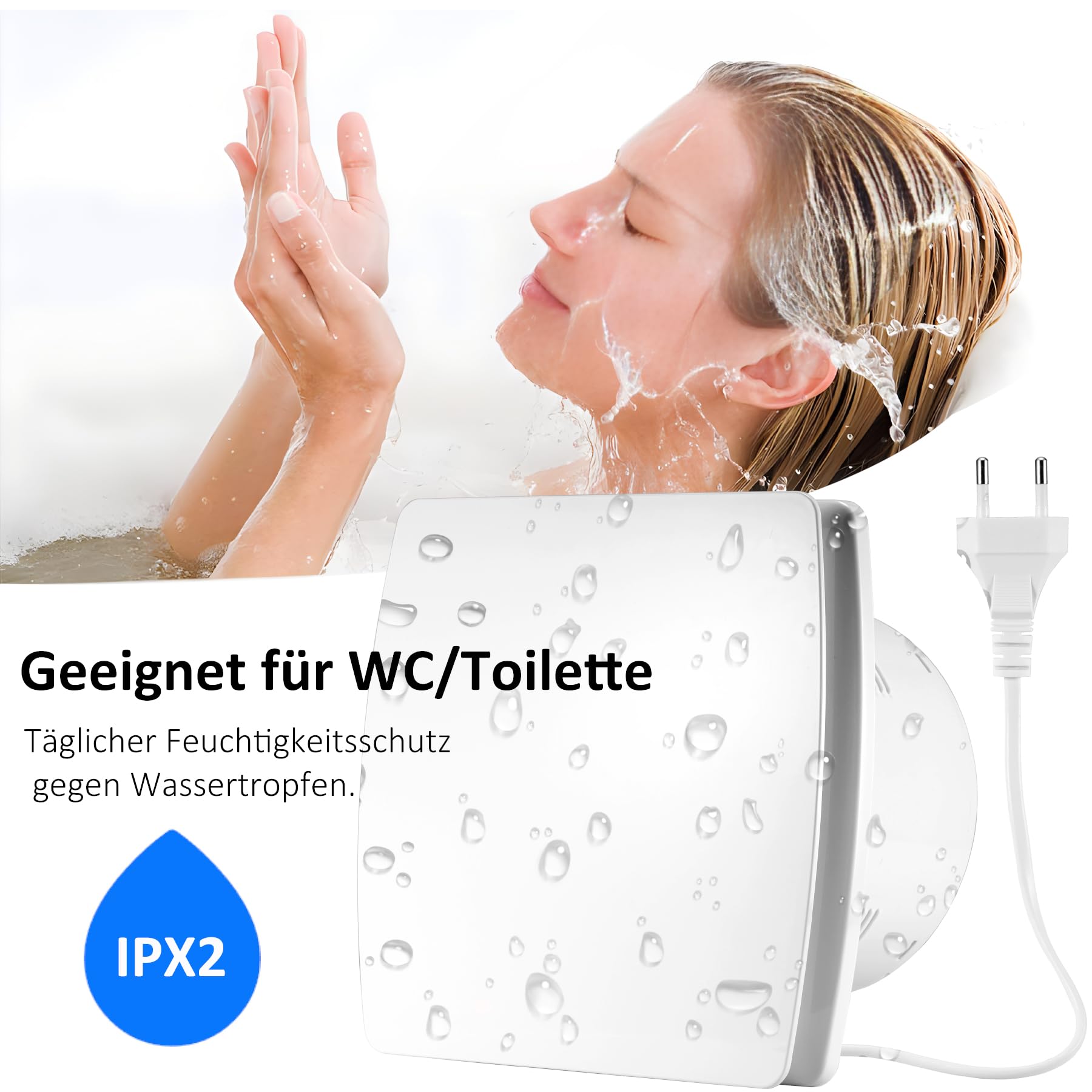 Moonjor 150mm exhaust fan kitchen, 240m³/h IPX2 Silent bathroom extractor window fan with check valve 1m EU power cord for bathroom, toilet, garage, office, attics