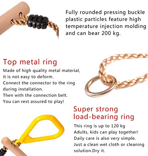Morwealth Multifunctional Kids Wooden Trapeze Swing with Plastic Rings Gymnastic Rings for Hanging Supports up to 120KG for Indoor and Outdoor Use (Yellow)