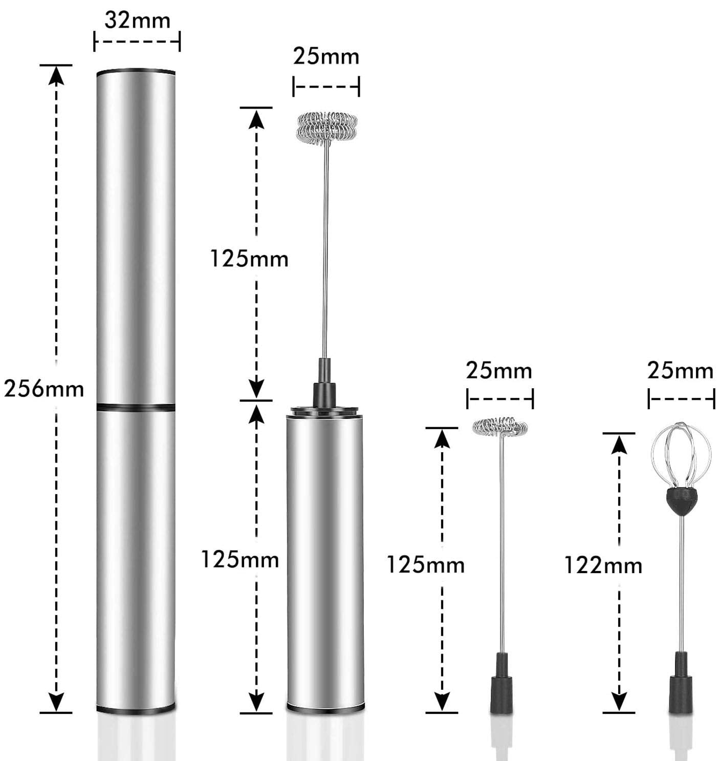"【Multifunctional Milk Frother】The frother comes with 3 attachments that are easy to switch. The attachments can easily be slid on and off the device. Choose the small whisk to get the perfect milk foam. In addition to milk foam, you can prepare dressings, whip eggs or sauces with this tool.",