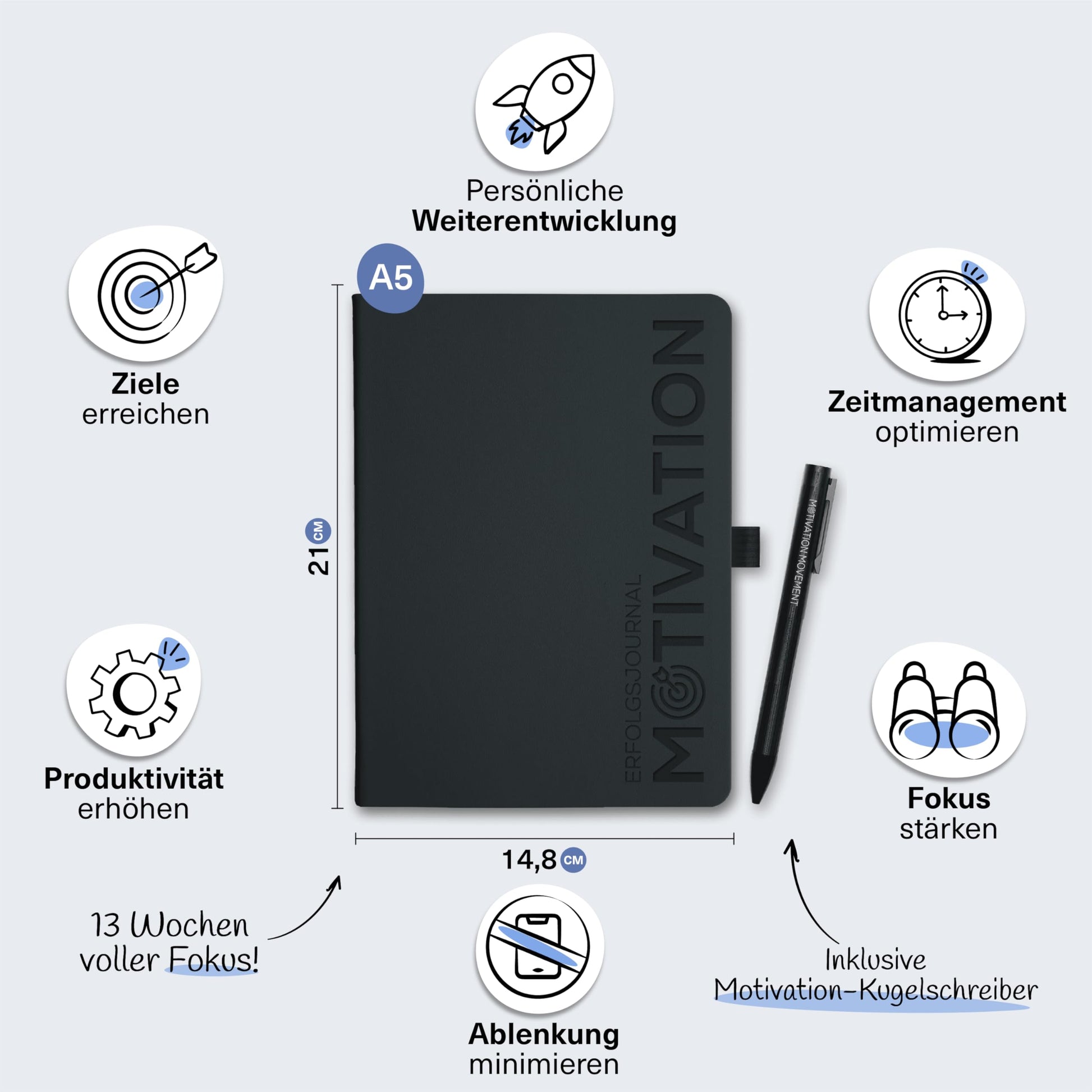MOTIVATION MOVEMENT Success Journal - Daily Planner - Includes Learning Platform, Mindset & Workbook - Increases Focus & Productivity - Journal - Planner - A5 Size - Diary for Adults (1x + Pen)