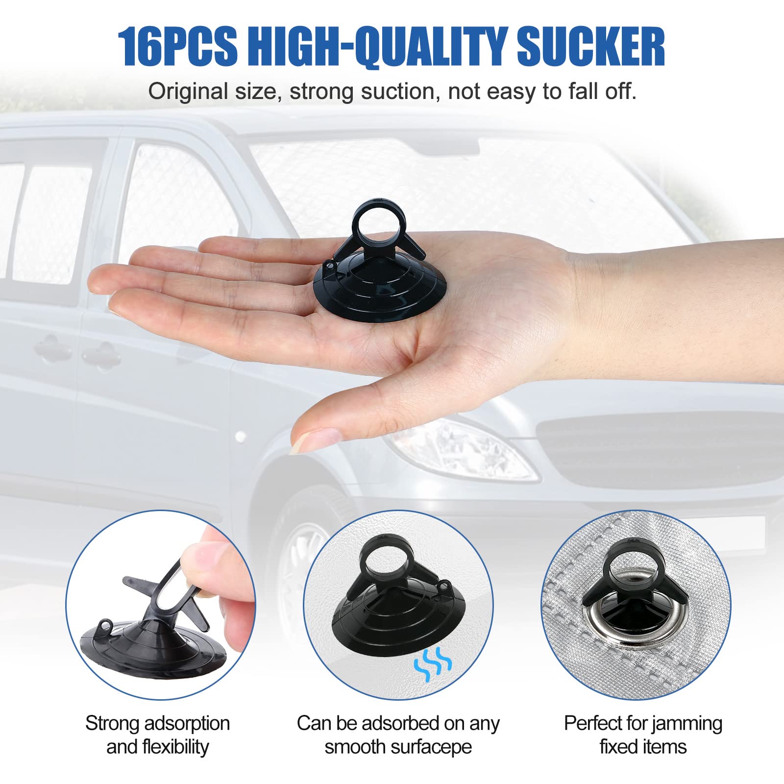 Quick to install and easy to store: Sunshade wrap cover with built-in eyelets for easy attachment of the included suction cup. The cover can be easily attached to the motorhome's glass window without the need for adhesive or screws. Includes a storage bag for convenient storage when not in use, keeping your vehicle clean.