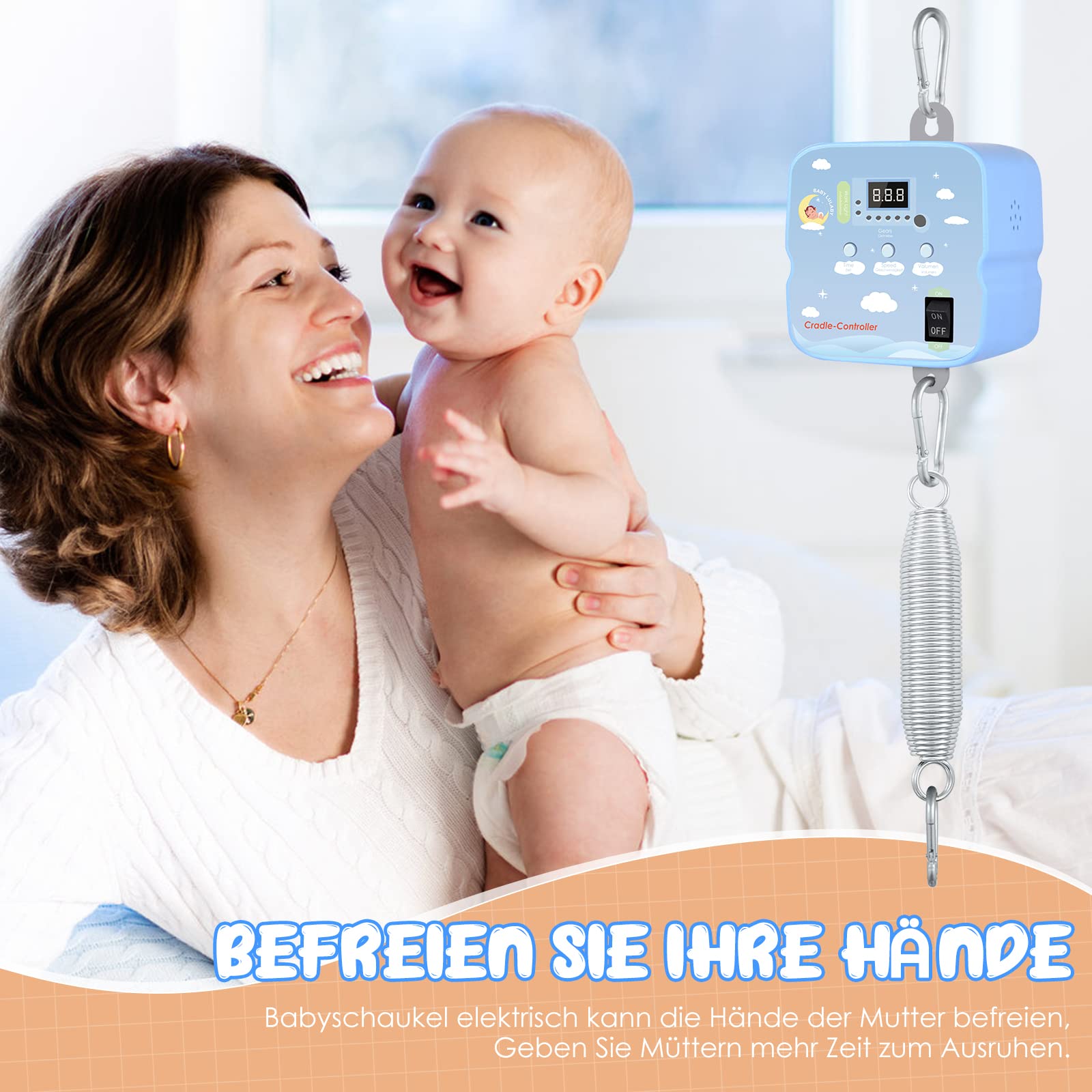 ["👶【Helping Baby Sleep】The updated cradle swing motor allows the baby to sleep more calmly and quietly! Gentle and slow swinging can help the baby fall asleep quickly and save the mother's energy. Please note that this product is designed to help babies fall asleep and is not recommended for overnight use.","👶【Adjustable Time and Speed】The Electric Baby Swing Controller can adjust the time and swing speed. The timer can be set from 15 to 240 minutes. 9-level adjustable swing speed, catering to the baby's preferences and ensuring gentle swinging.","👶【Weight Capacity up to 20 kg】Cradle swing motor includes 2 springs to support babies of different weights. The small spring can carry 3 to 9 kg and the large spring can carry 9 to 20 kg. Note: Please adjust the springs according to the total weight of your baby plus the hammock. (the maximum of 20 kg is the weight of the baby plus the hammock)","👶【Equipped with Remote Control】The upgraded cradle swing motor comes with a remote control to adjust the running time and swing speed of the electric swing control. The music volume is adjustable, and if you don't like music, you can turn it off without worrying about disturbing your baby.","👶【Free Mother's Hands】Cradle swing motor frees the mother's hands, making it difficult for the baby to wake up, just like being in the mother's arms, providing enough security for the baby. The spring extension range of the hammock motor is 30-50 cm. We recommend that the height of the baby hammock be less than 1 m, the hammock should be at least 50 cm above the ground, and the height of the baby hammock stand should be higher than 2 m."]