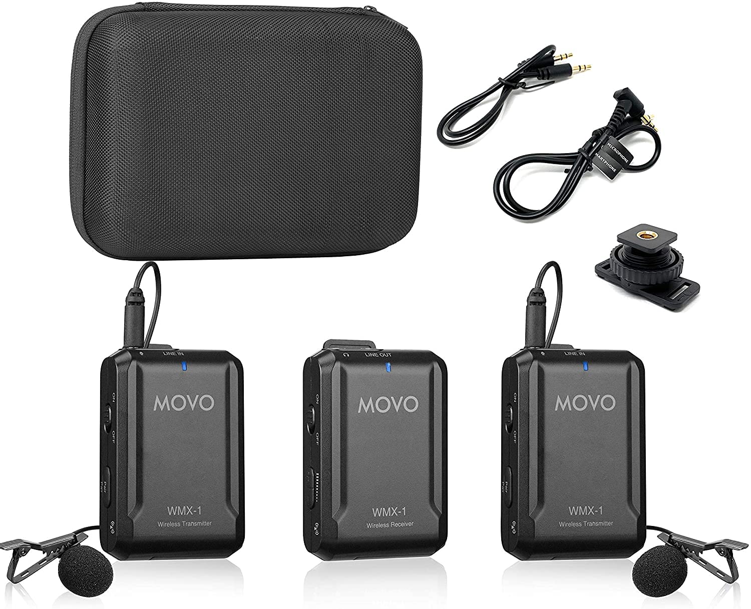 Movo WMX-1-DUO 2.4GHz Wireless Lavalier Microphone System, compatible with DSLR cameras, camcorders, iPhone, Android smartphones, and tablets (60m audio range)