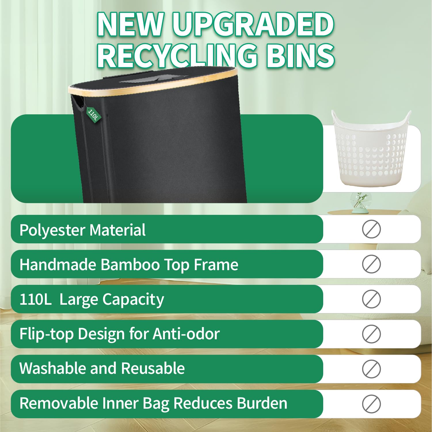 MOWETOO 110L deposit bottle collection container with lid & 2 detachable carrying bags, large deposit bottle storage, container for empty bottles & used glass storage, kitchen pantry bottle bag.