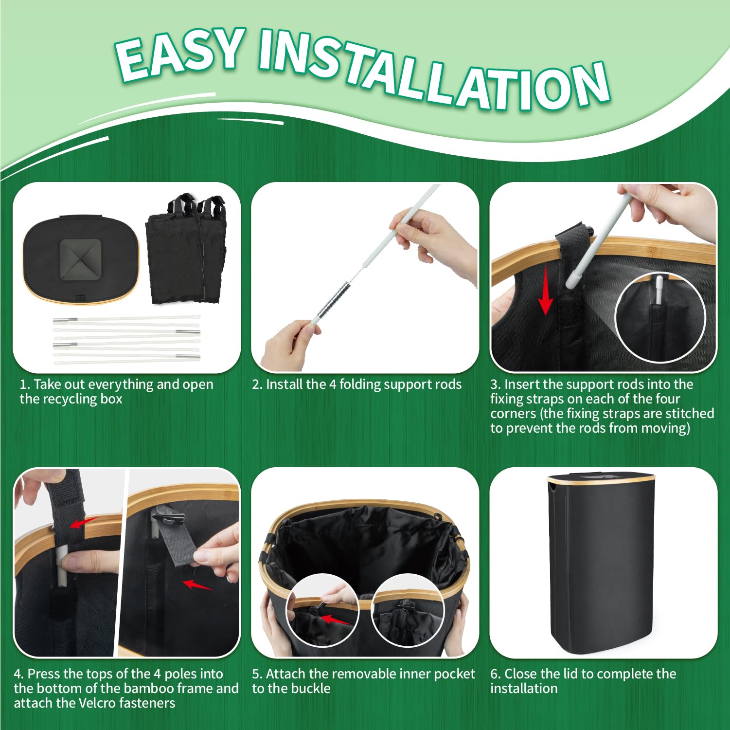 "LARGE STORAGE SPACE: The plastic bottle collection container measures 17 x 13 x 30 inches and has a capacity of up to 29 gallons. It conveniently stores reusable bottles, jars, and glasses, promotes sustainable recycling, and contributes to environmental protection.